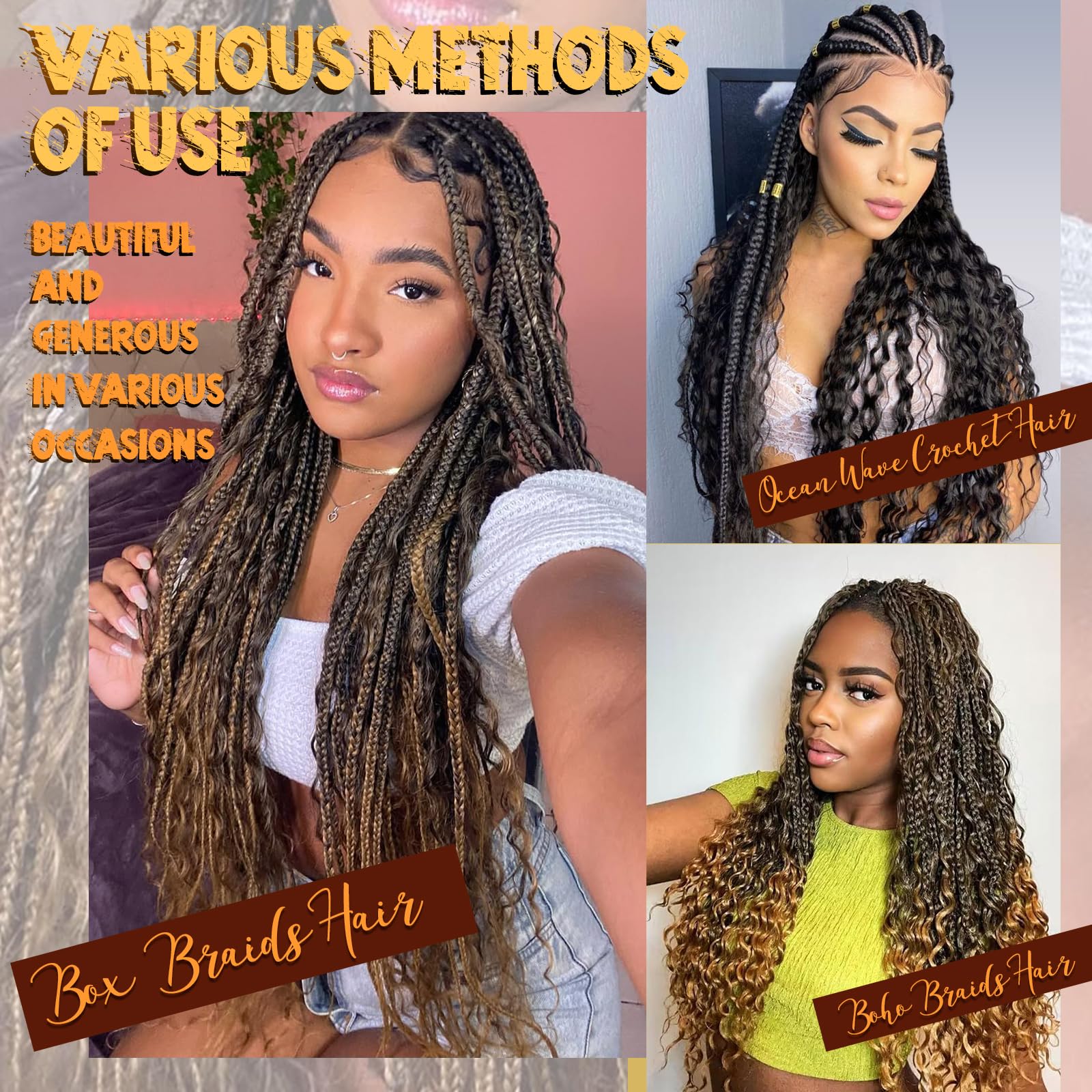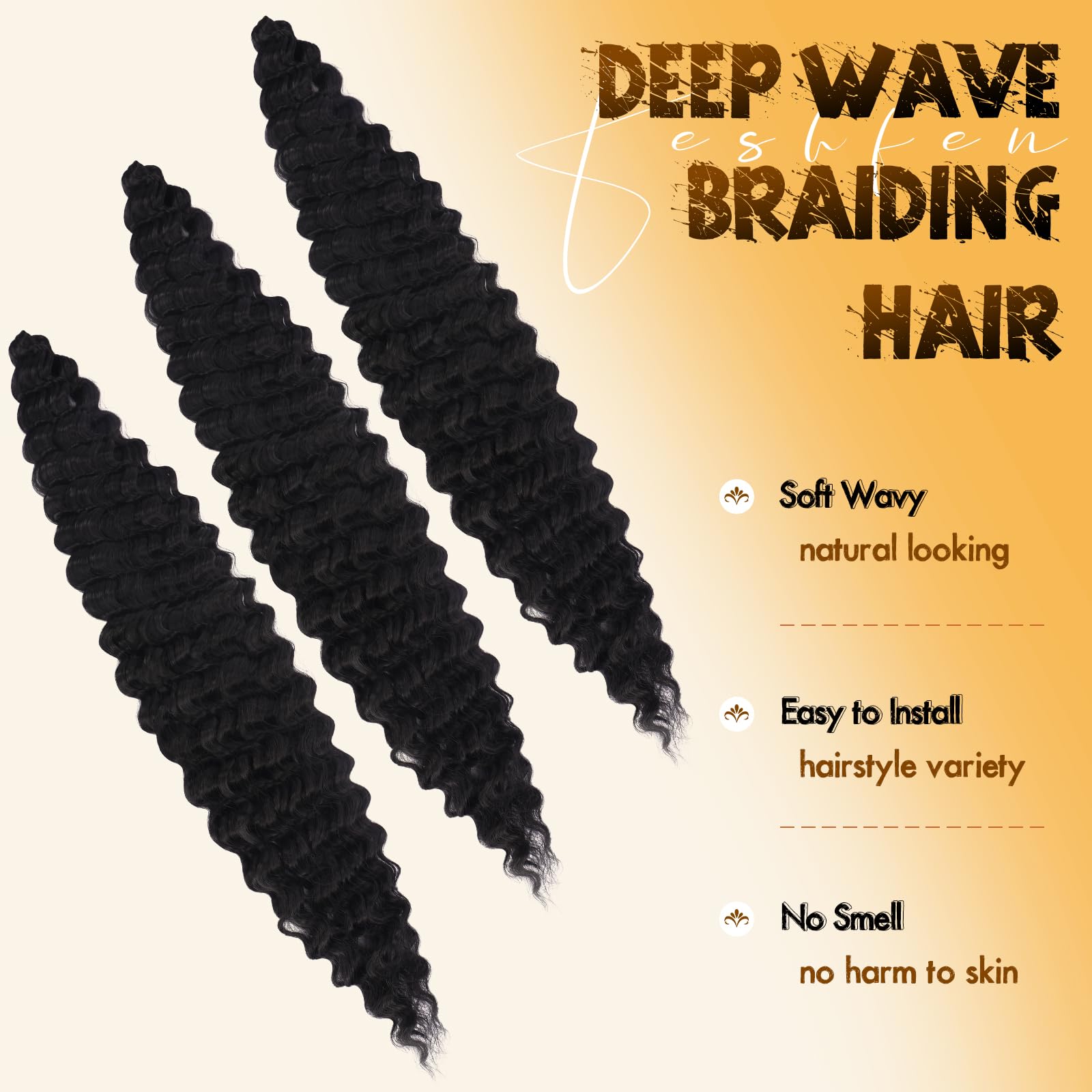 Sünteetilised juuksepikendused, mustad lokid (3tk, 55cm)