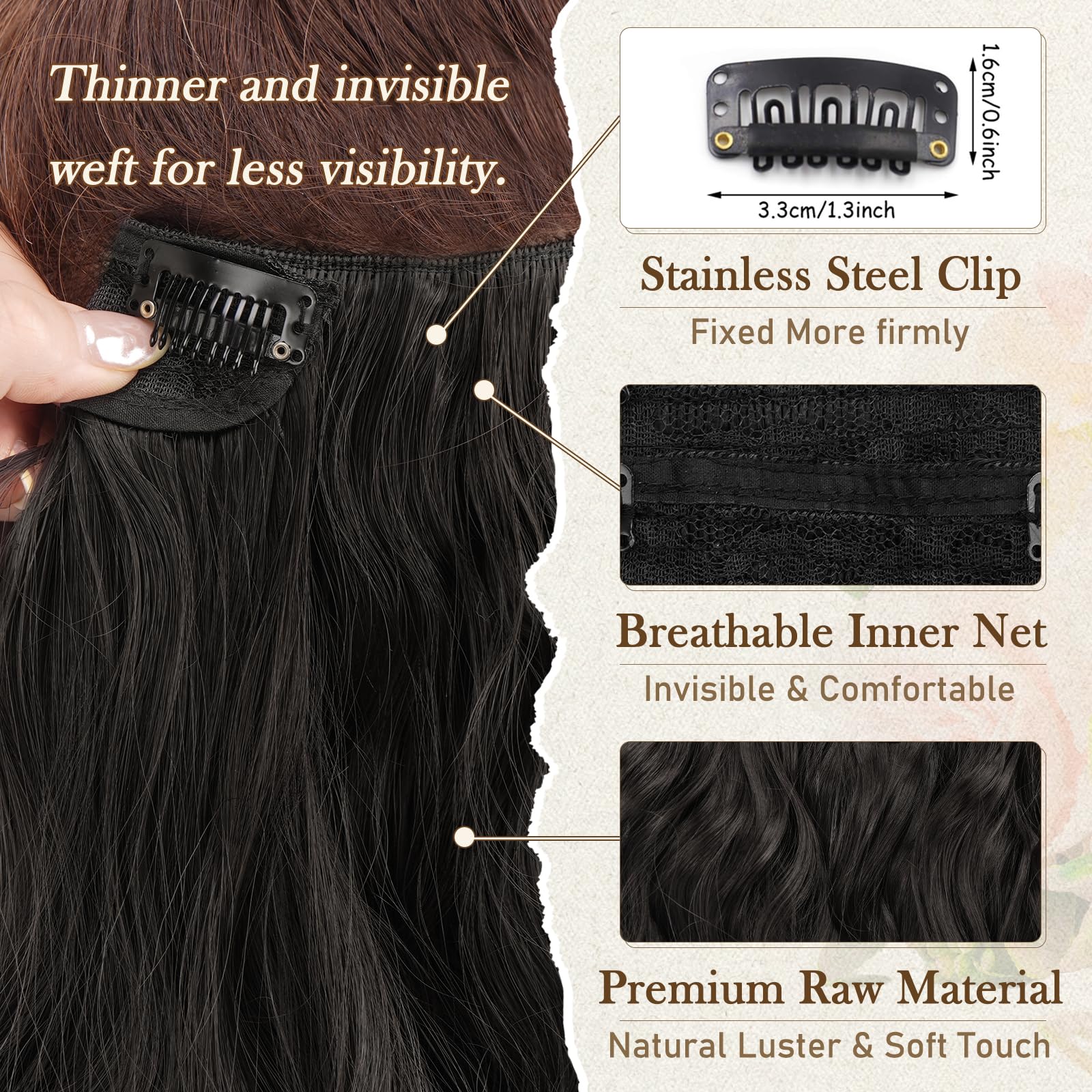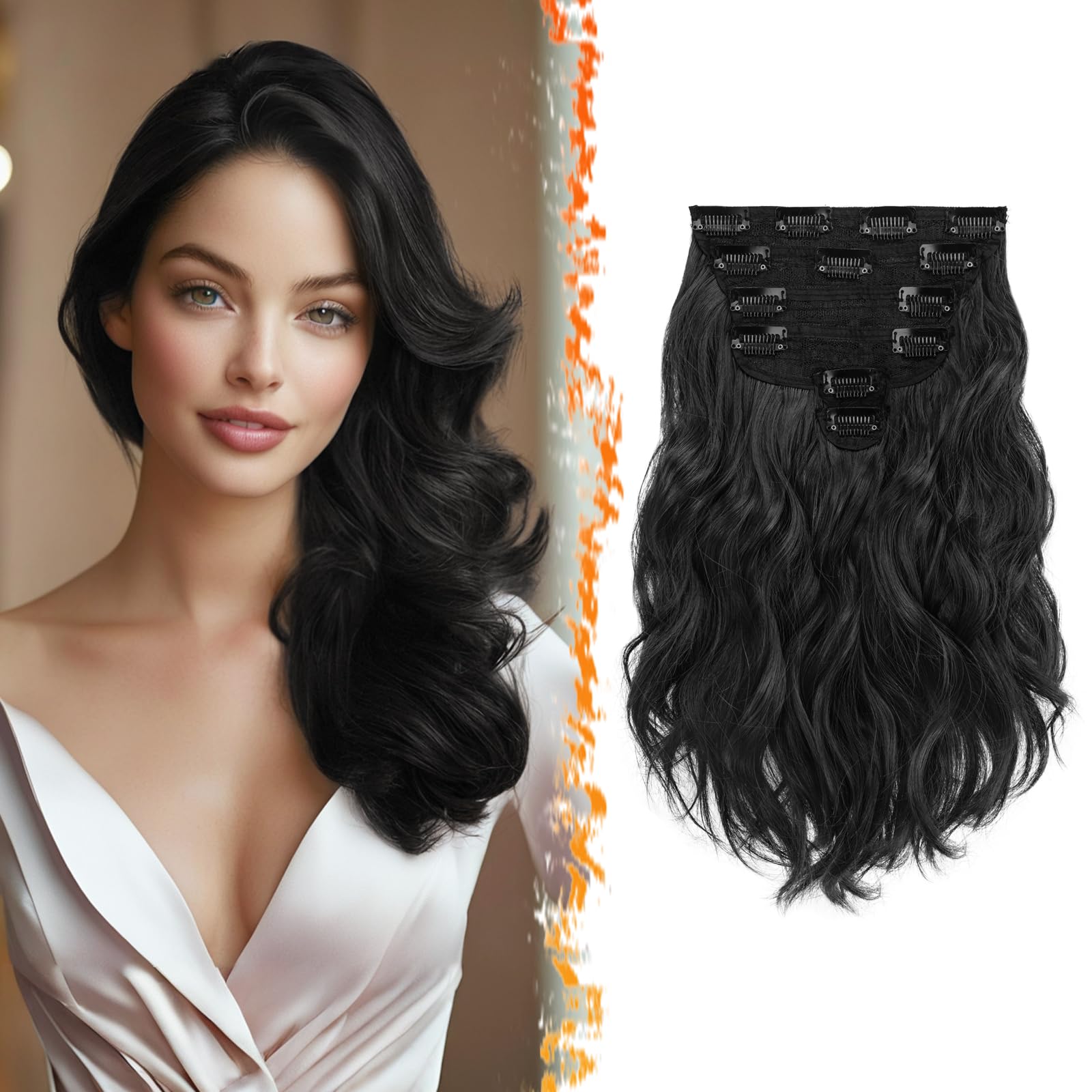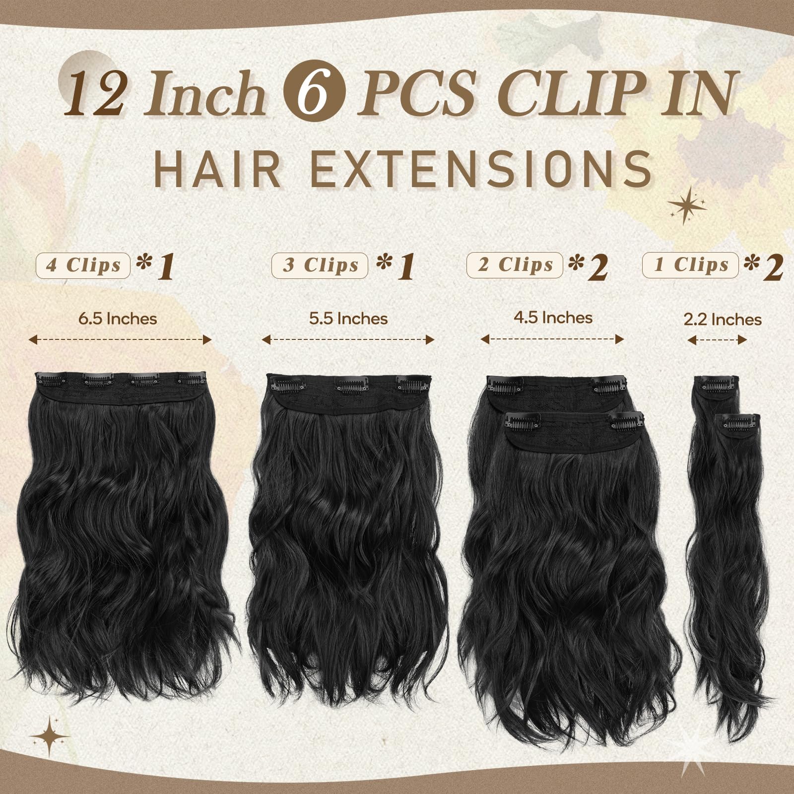 Sünteetilised lainelised juuksepikendused, klambritega, naturaalne must (6tk, 30cm) kogus