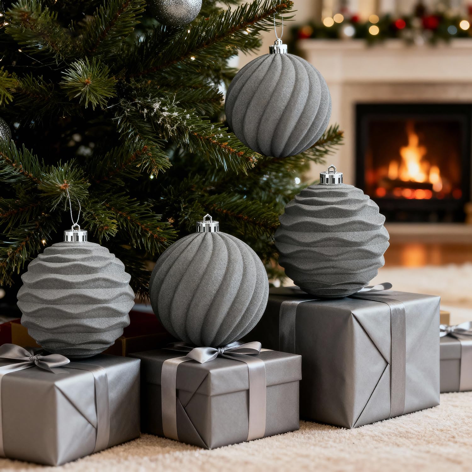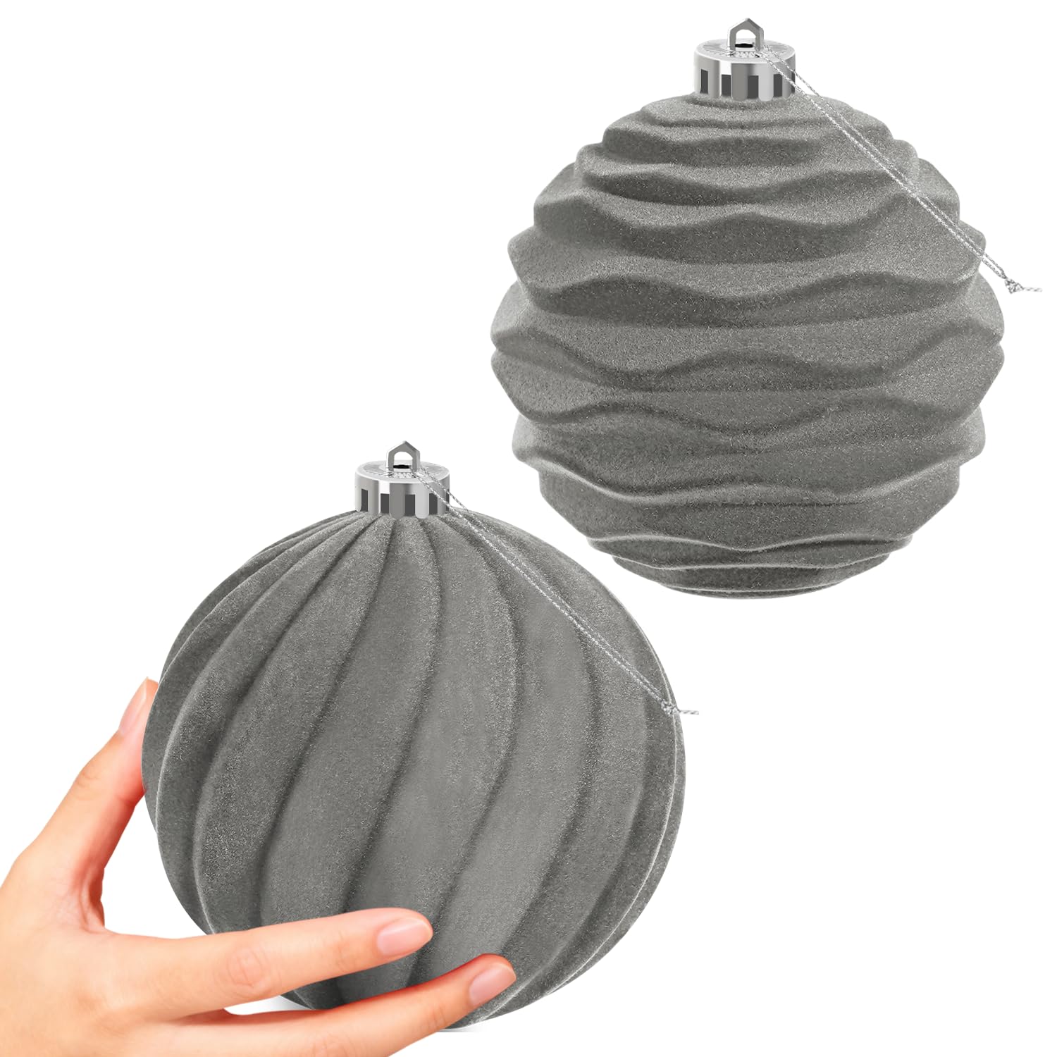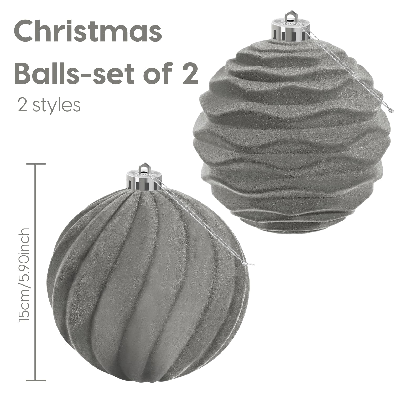 Suured sametist jõulukuulide komplekt, hall (15cm), 2 tk