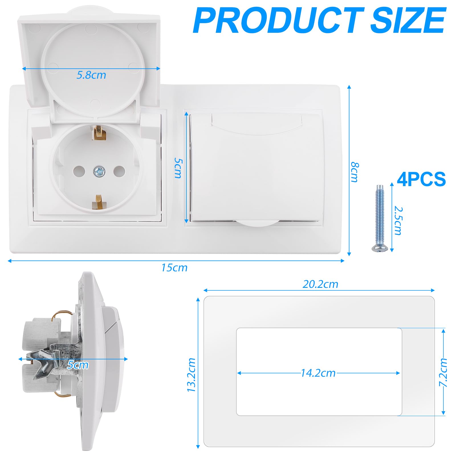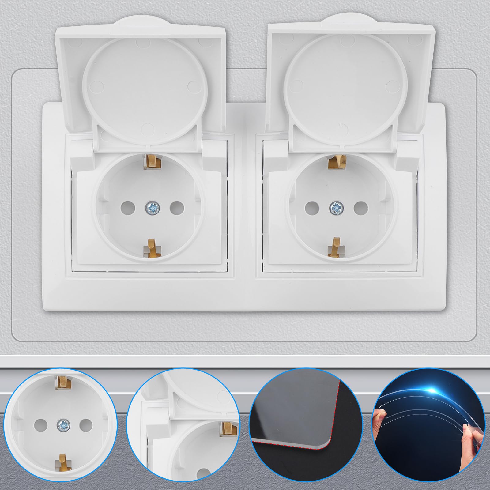Süvistatav veekindel topeltpistikupesa, valge, kaanega (16A, 250V)