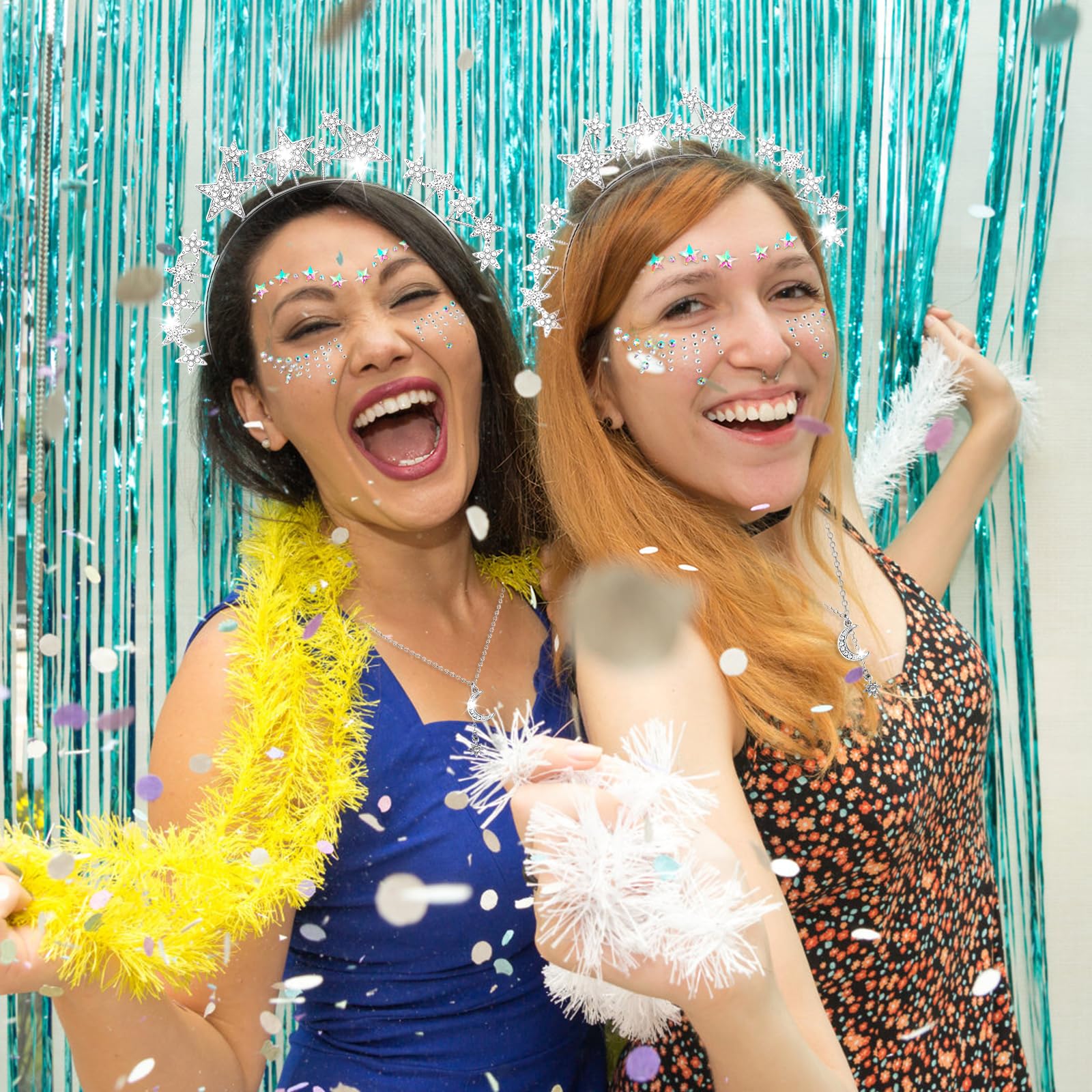 Tähtedega sädelev peavõru koos näokleepsude ja kaelakeega kogus