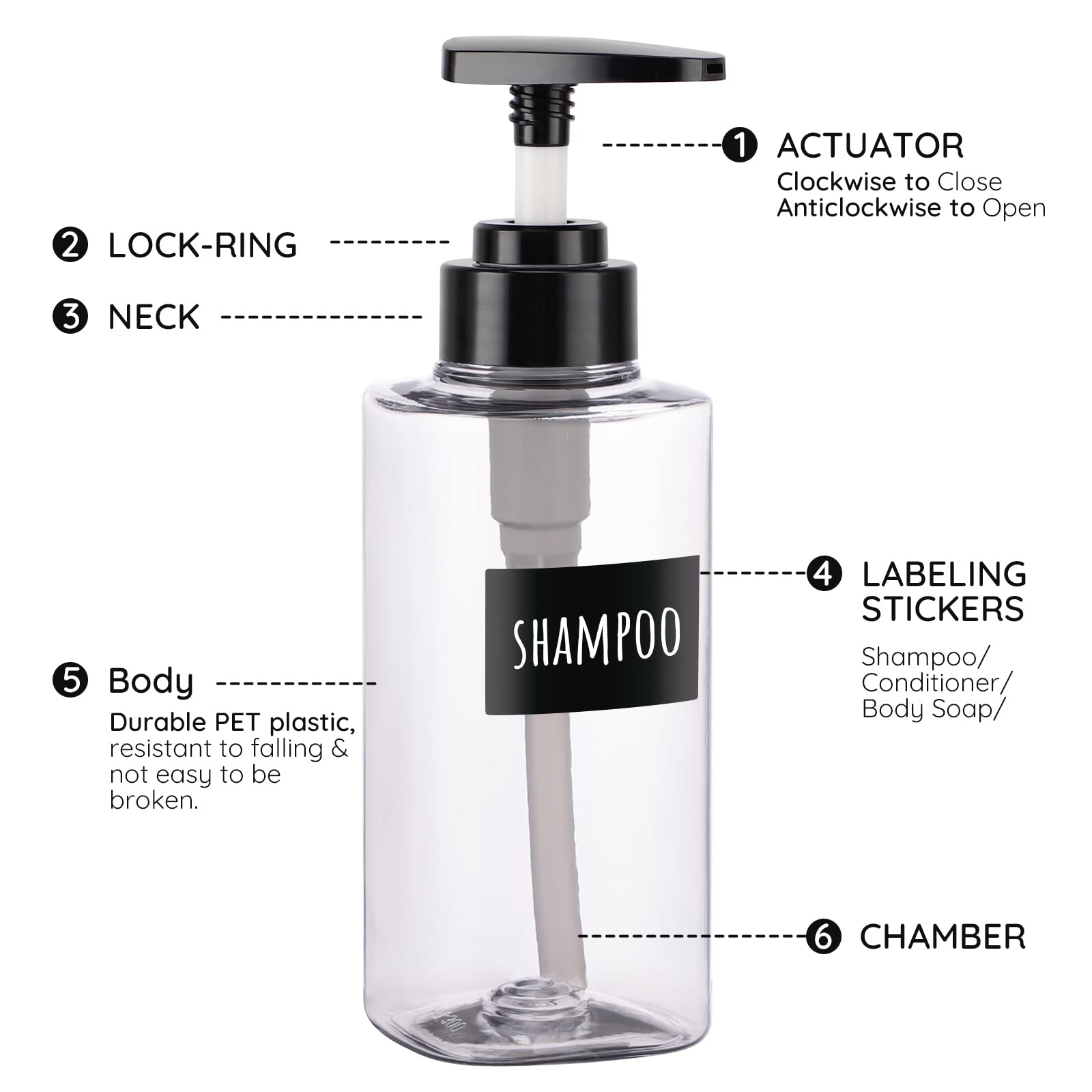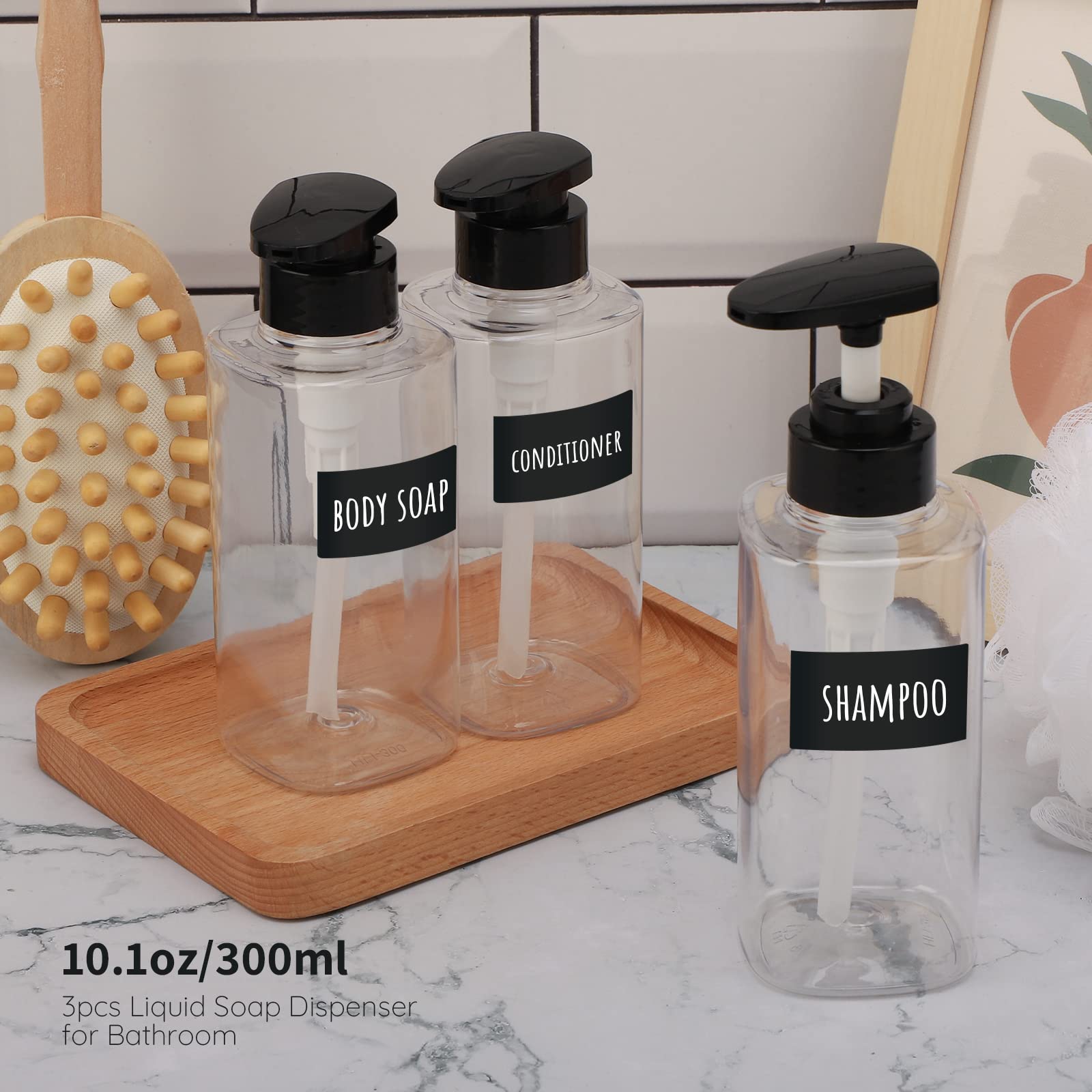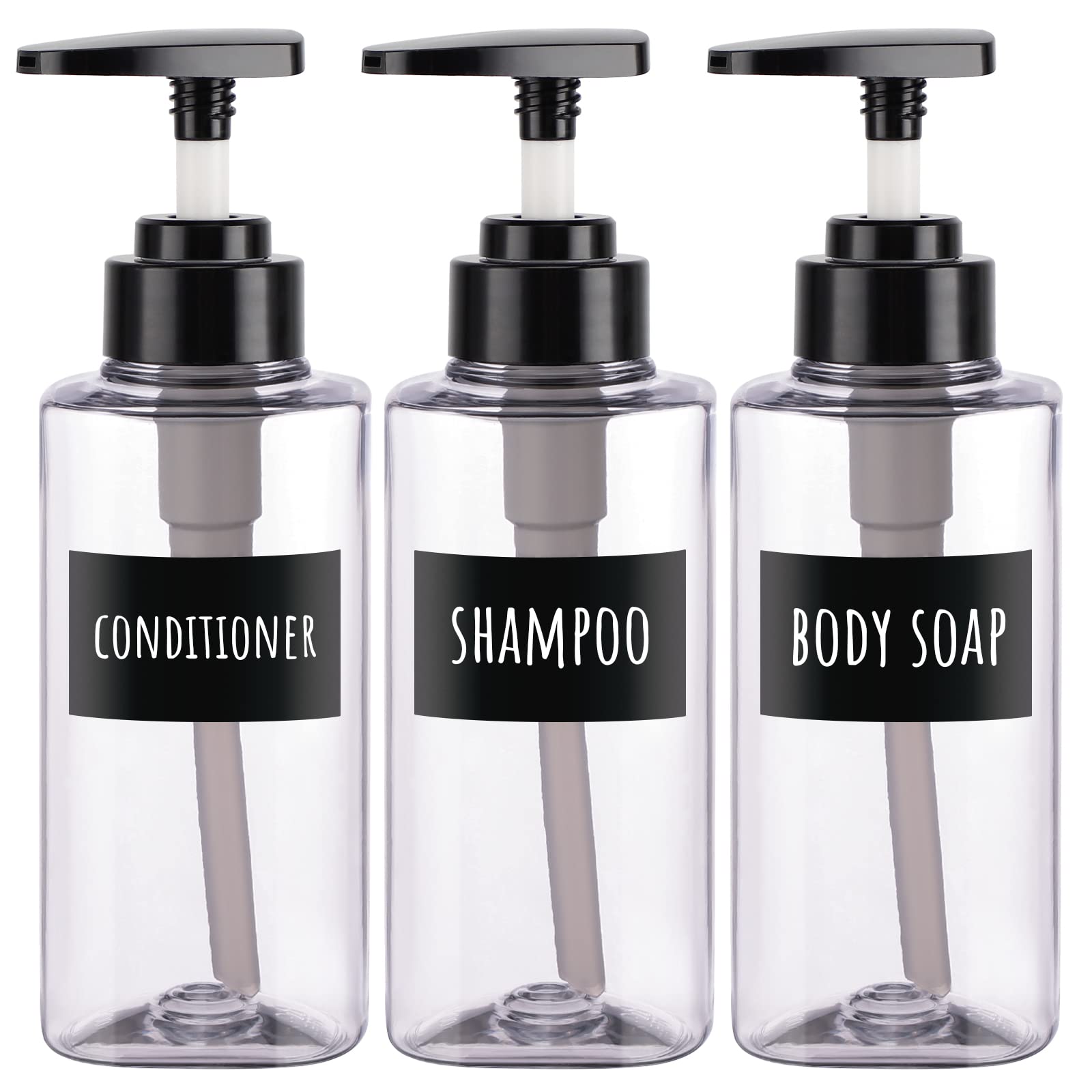 Täidetavad seebidosaatorid siltidega, läbipaistev (3tk, 750ml)