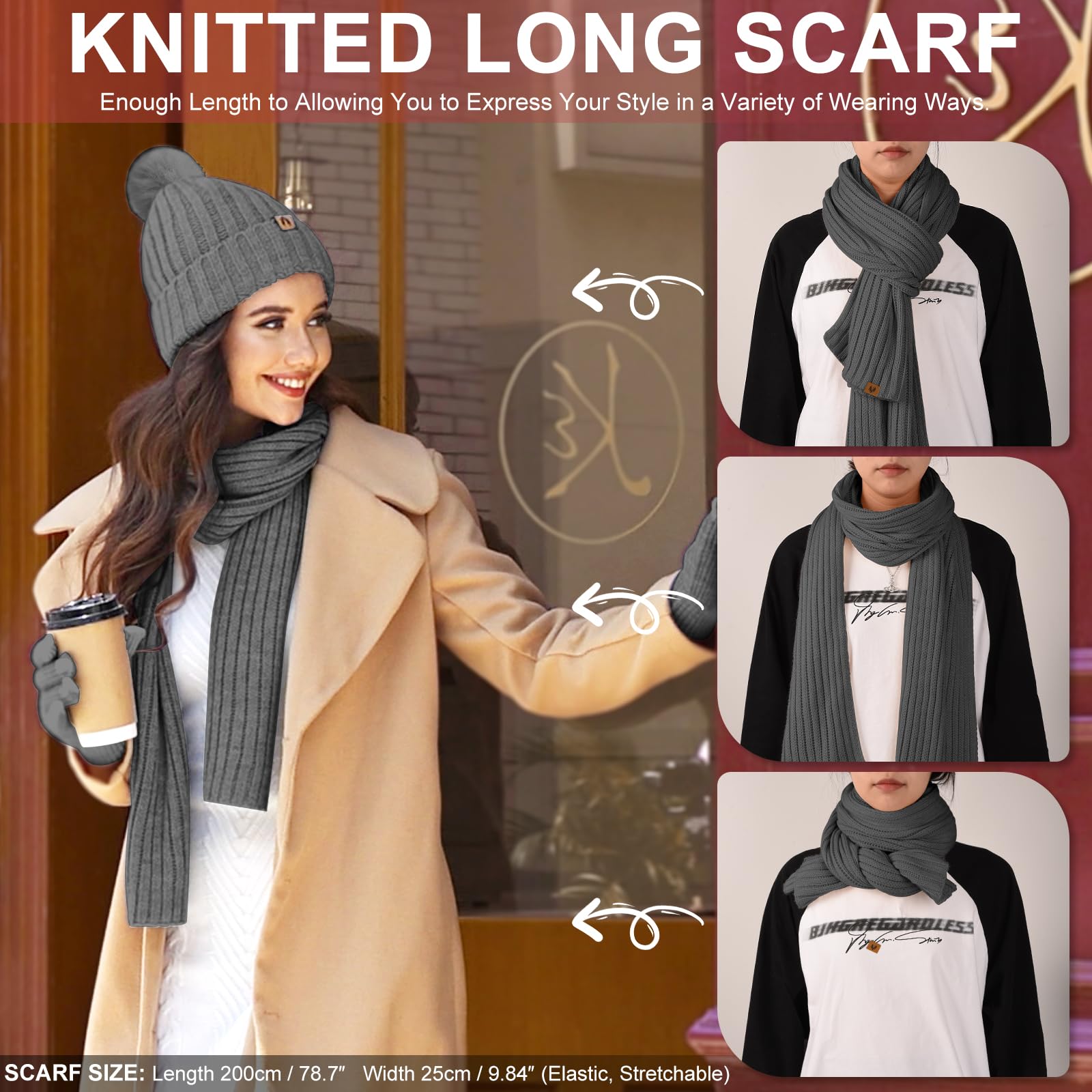 Talvine mütsi, salli, kõrvaklappide, sokkide ja kinnaste komplekt