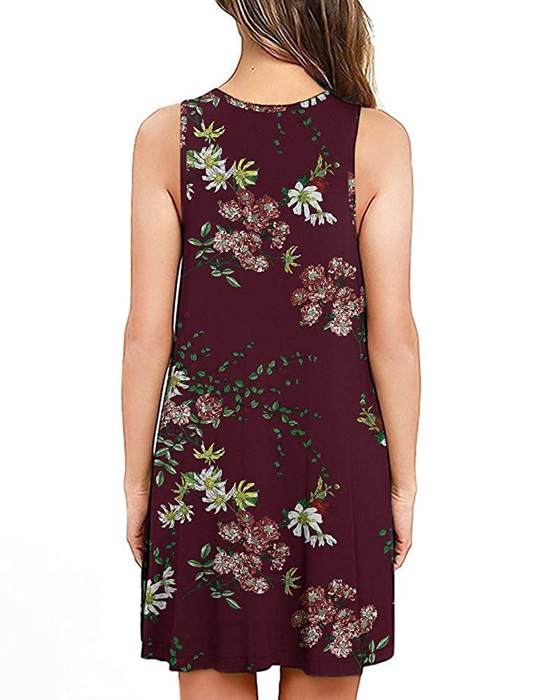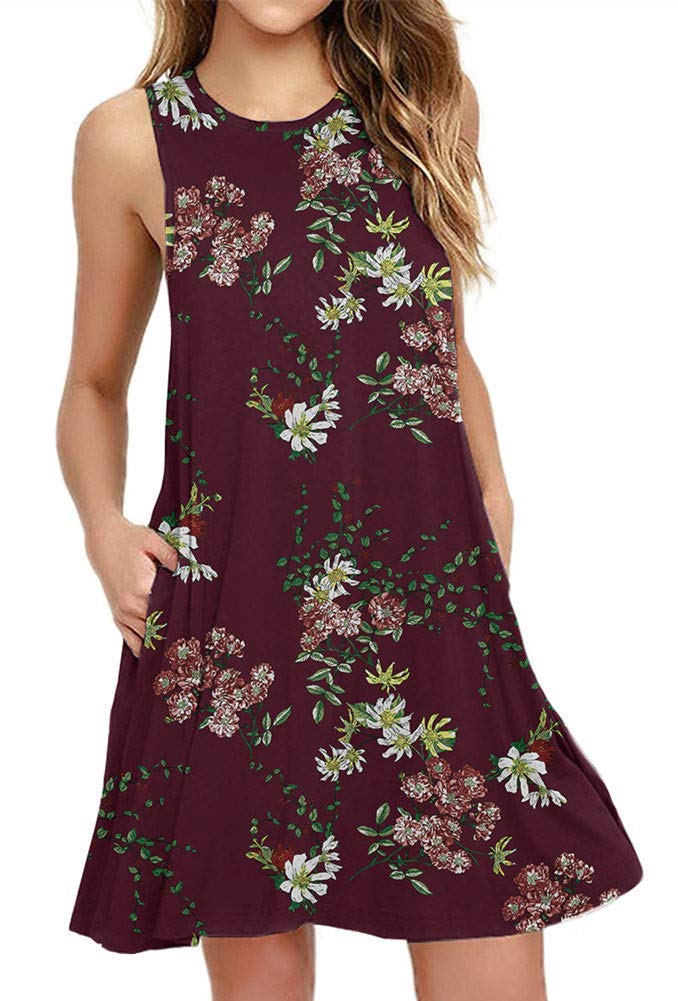 Taskutega varrukateta kleit, lilleline veinipunane (S)