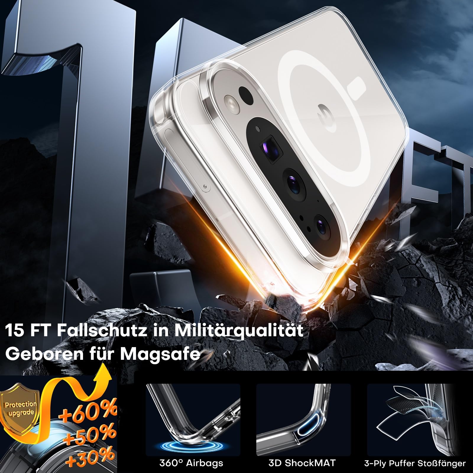 Telefonikaaned Google Pixel 10 Pro XL, magnetiline, põrutuskindel, läbipaistev
