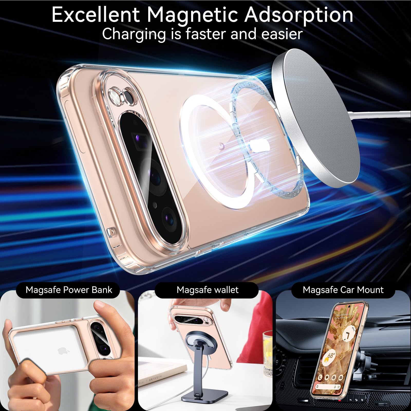Telefonikaaned Google Pixel 9 Pro XL, magnetiline, läbipaistev kogus