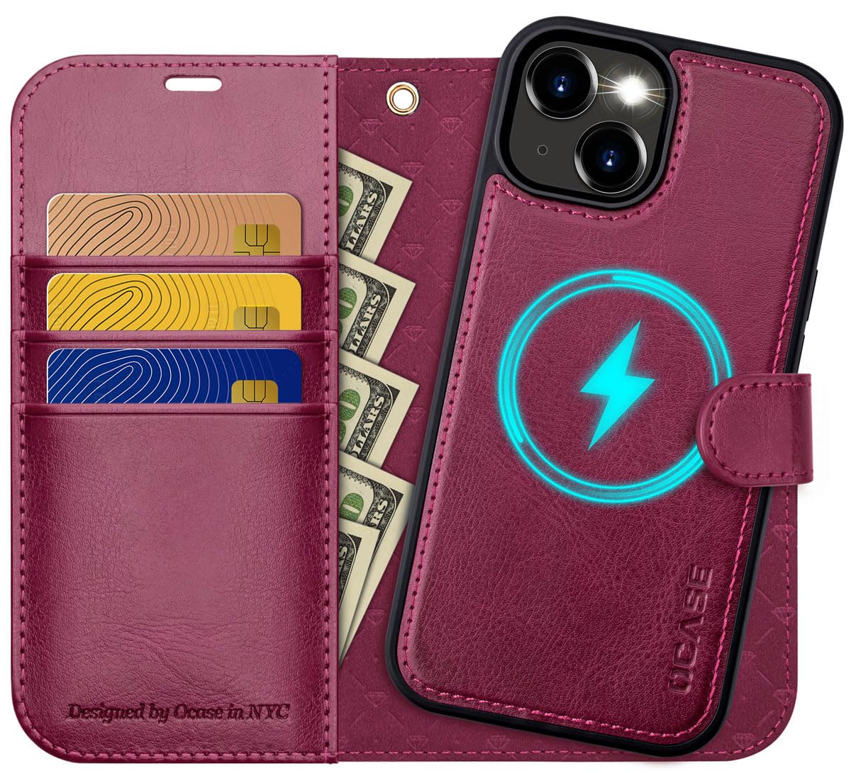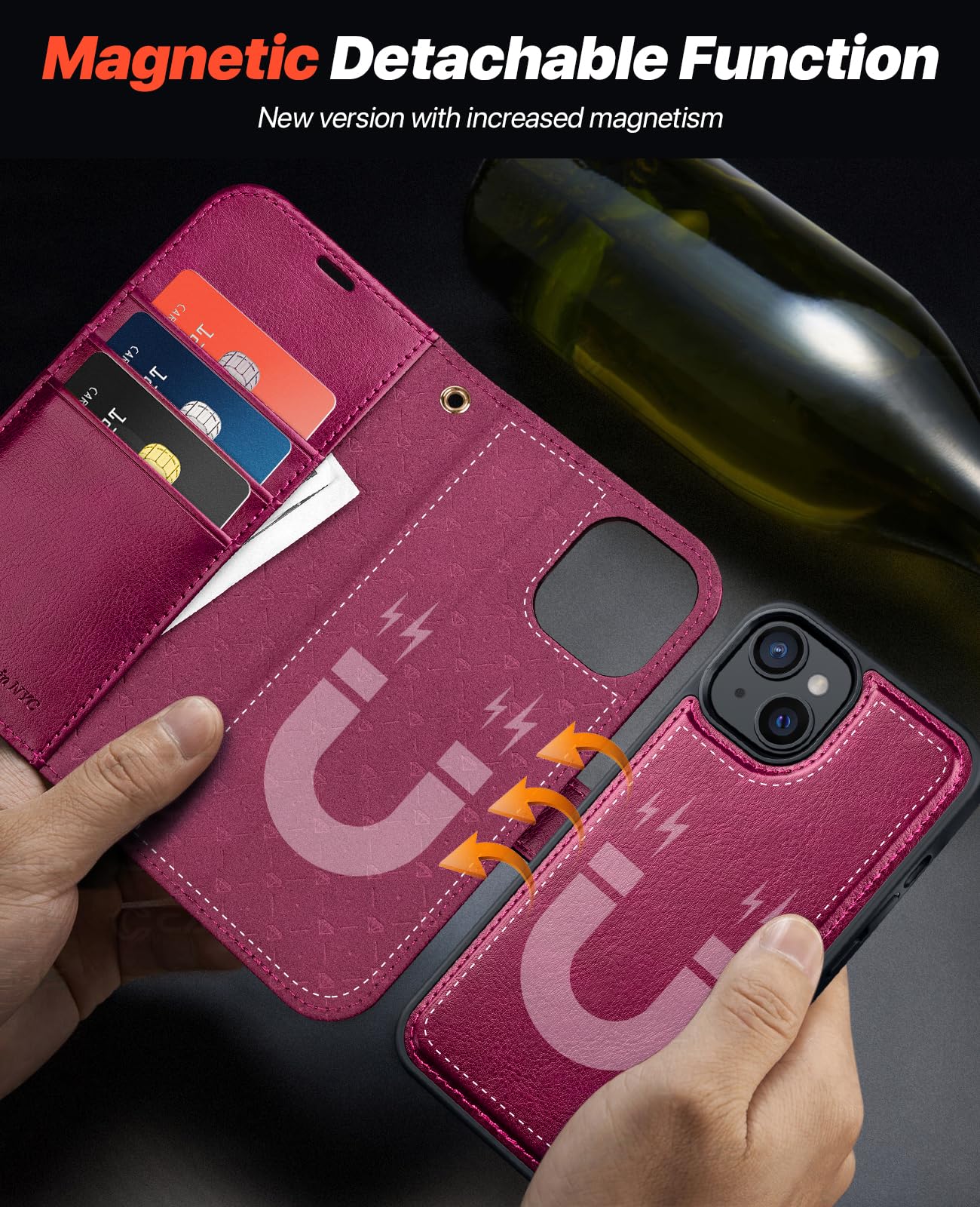 Telefonikaaned iPhone 15 Plus, nahast, magnetiline, burgundiapunane (17cm)