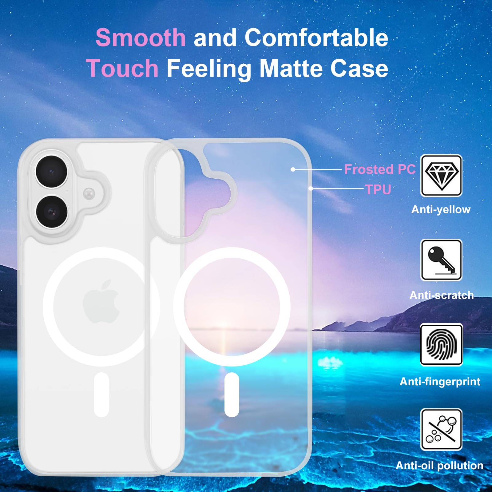 Telefonikaaned iPhone 16-le, magnetkinnitusega, ekraanikaitsetega, läbipaistev matt