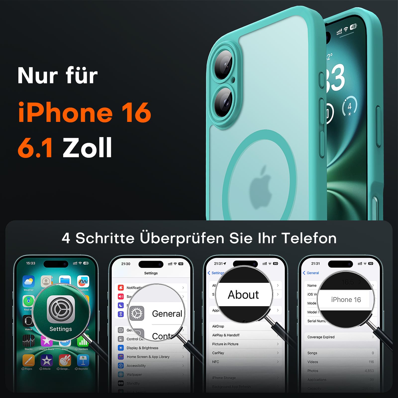 Telefonikaaned iPhone 16, MagSafe, kaamerakaitsega, sinakasroheline (komplekt)