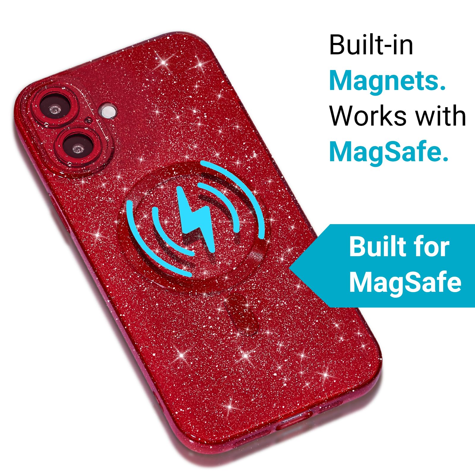 Telefonikaaned iPhone 16 Plus, MagSafe, sädelev, punane