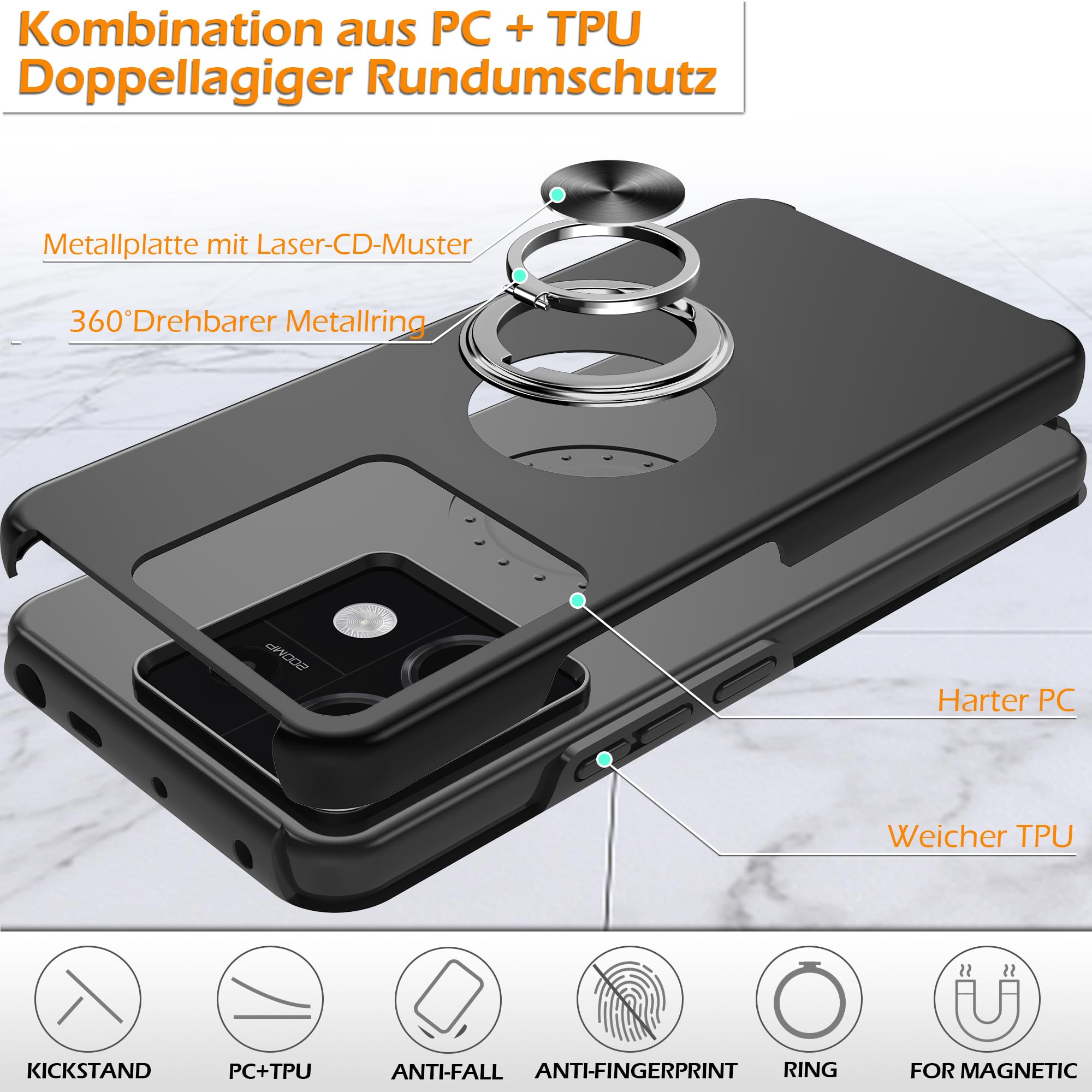 Telefonikaaned Xiaomi Redmi Note 13 Pro 5G, ekraanikaitsega, must