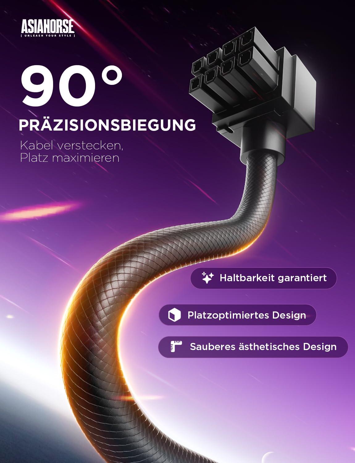 AsiaHorse Hydrus 8 Pin PSU Cable Extension, PC 8 Pin Sleeved Cable for GPU [18AWG] Power Supply Cable Extensions, 5V 3Pin ARGB SYNC for Asus Aura, ASRock and more