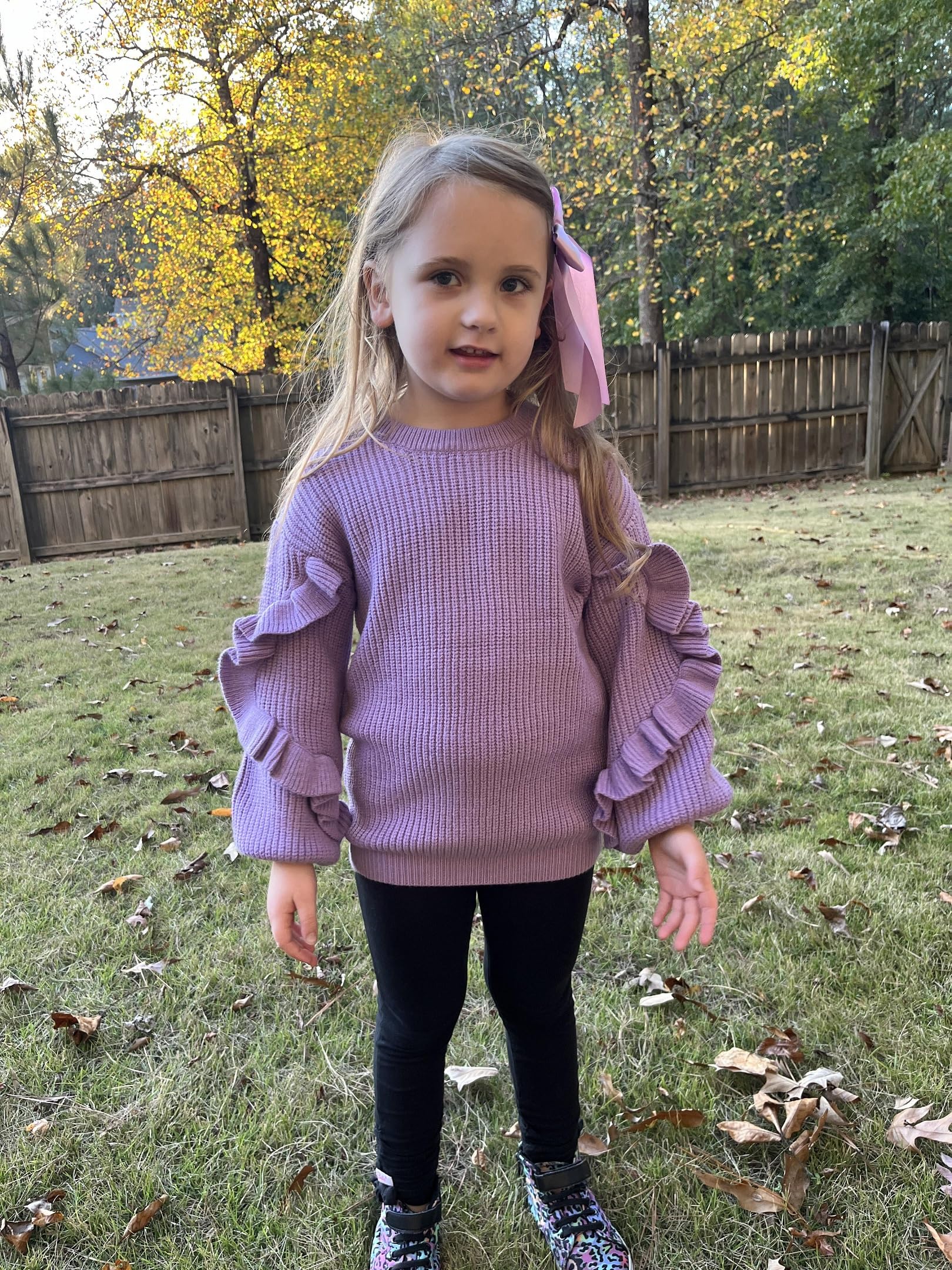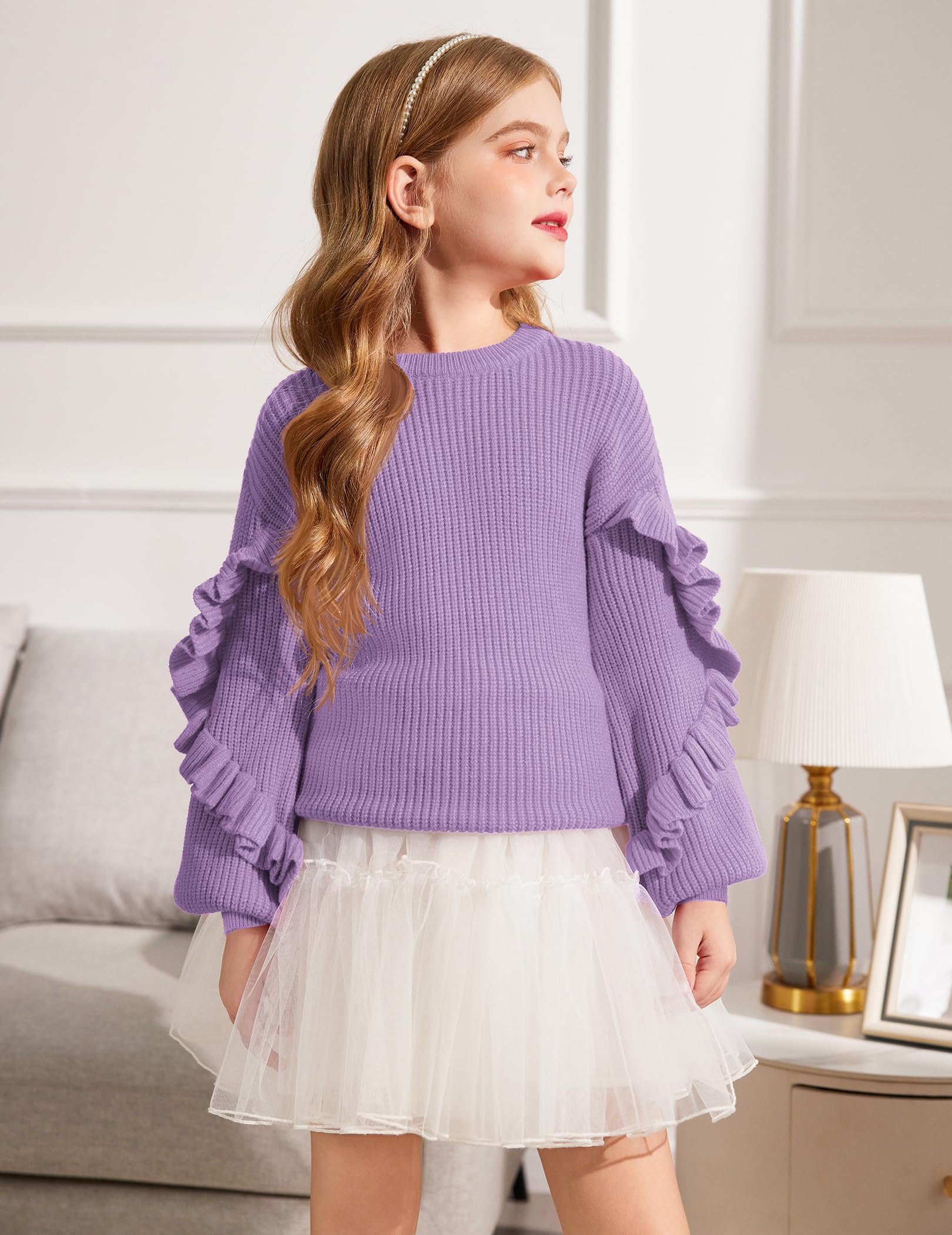 Tüdrukute kootud kampsun, laternavarrukatega, soe lilla (s. 11-12 aastat)