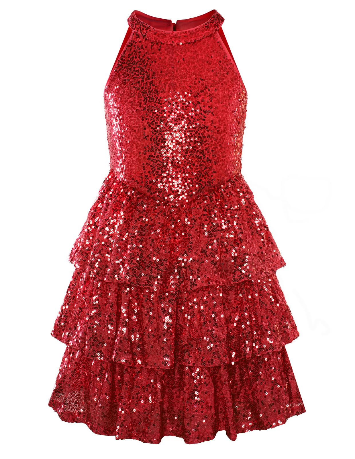 Tüdrukute pidulik kleit, sädelev (punane, s. 8 aastat)
