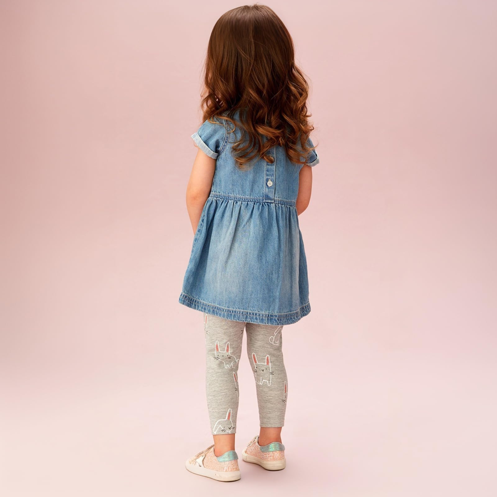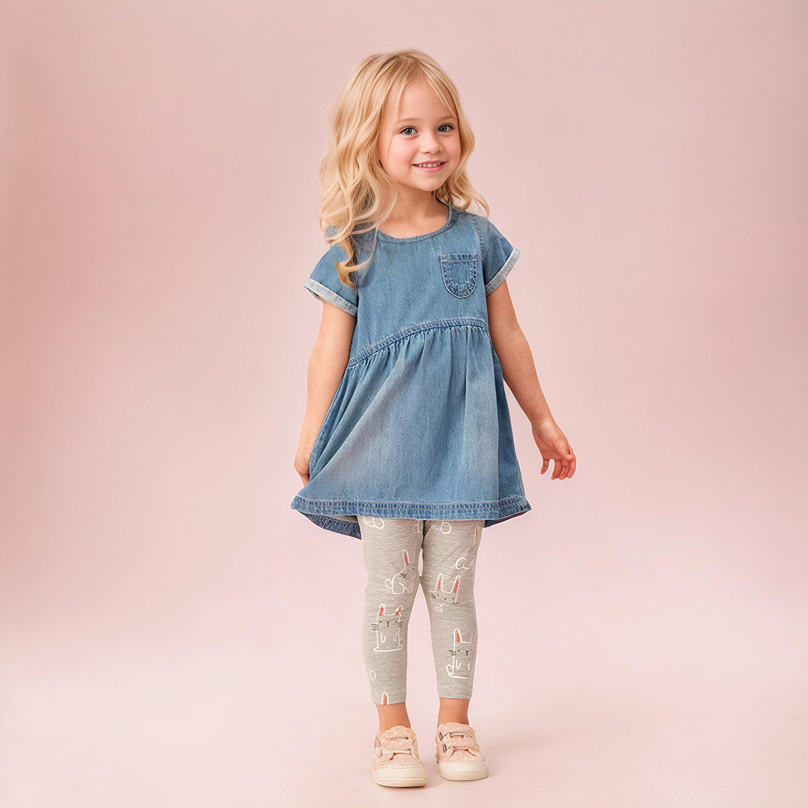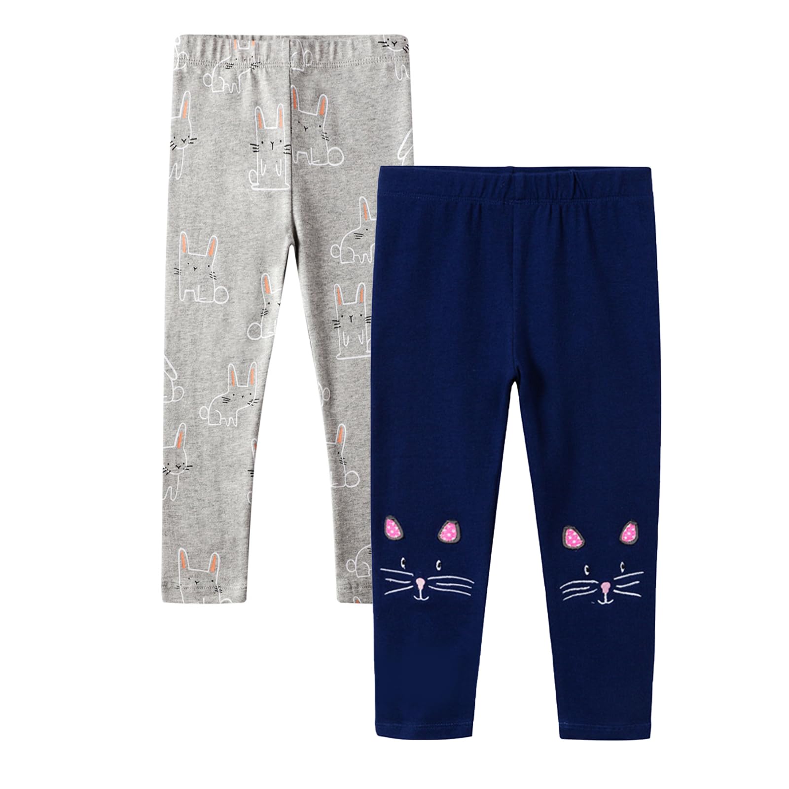 2-Pack Girls’ Cotton Stretch Leggings Unicorn Print – Blue & Grey 3 yrs