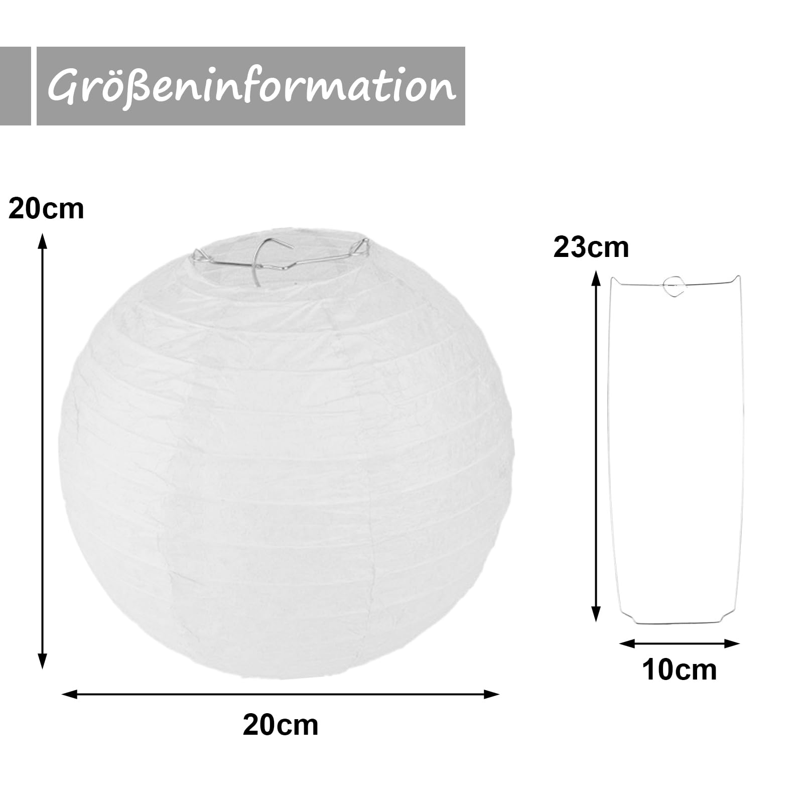 Ümmargune paberlatern, valge (20cm) kogus