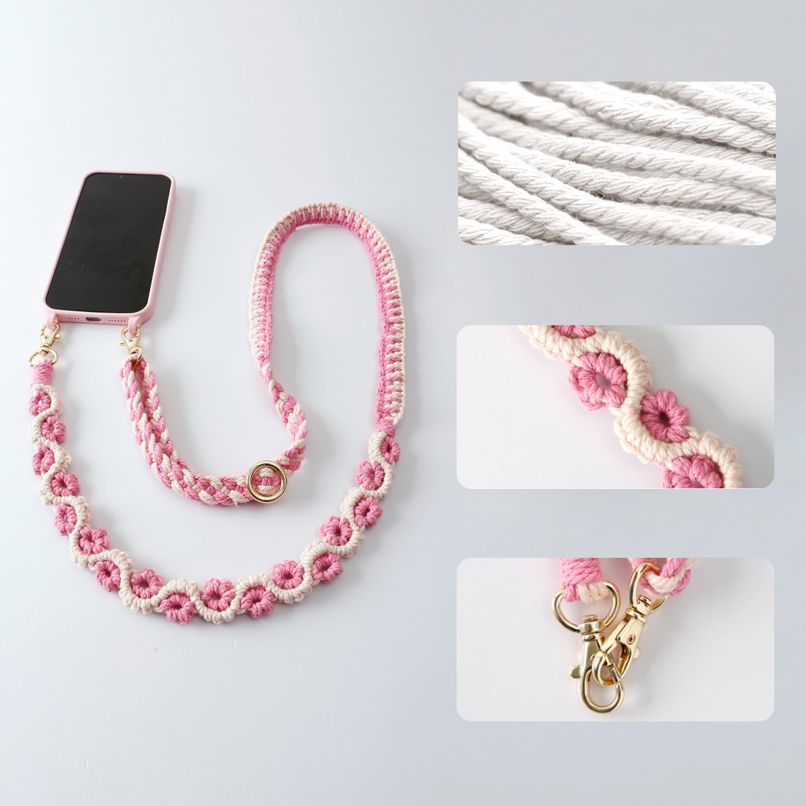Universaalne telefoni kaelapael, makramee, roosa