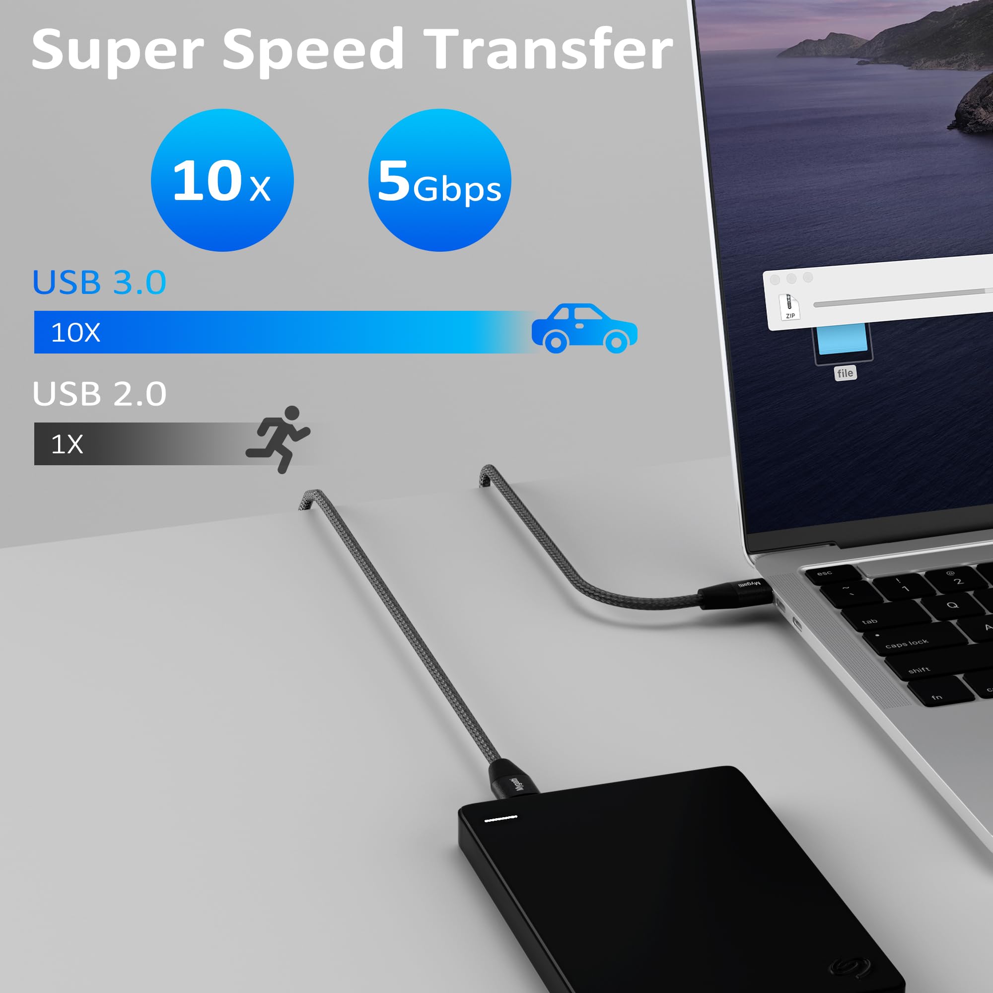 USB 3.0 kaabel, punutud (2tk, 1m)