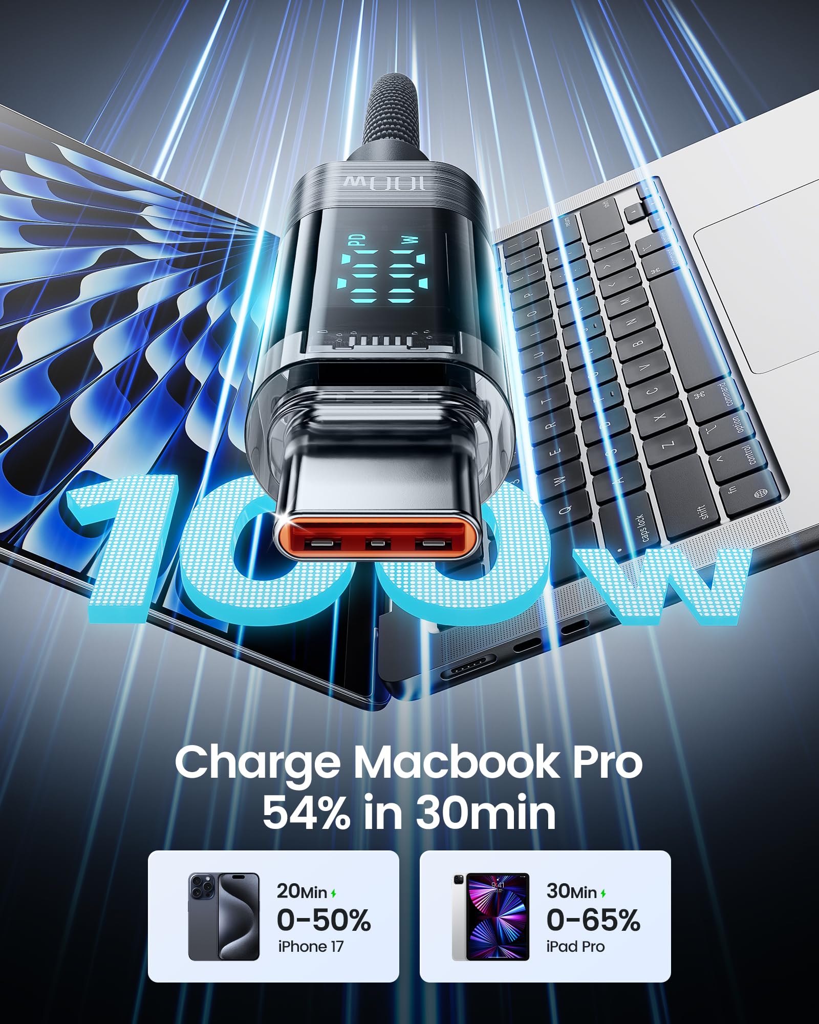 USB-C laadimiskaabel LED-ekraaniga, must (100W)