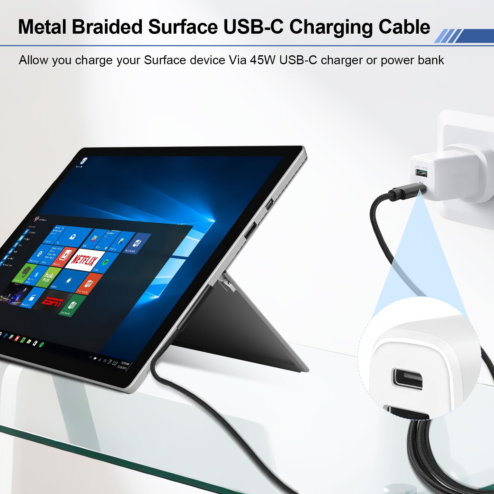 USB-C laadimiskaabel Microsoft Surface seadmetele (2m, 45W)