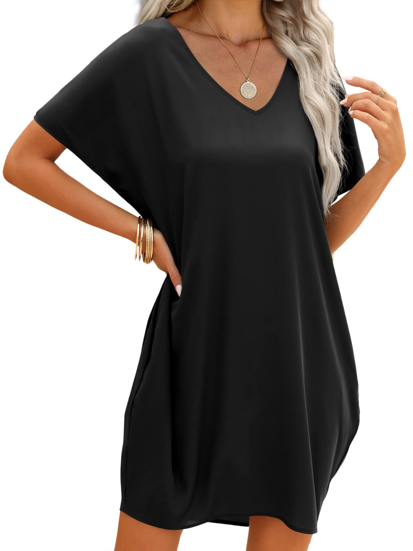 V-kaelusega põlvini suvekleit, must (L)