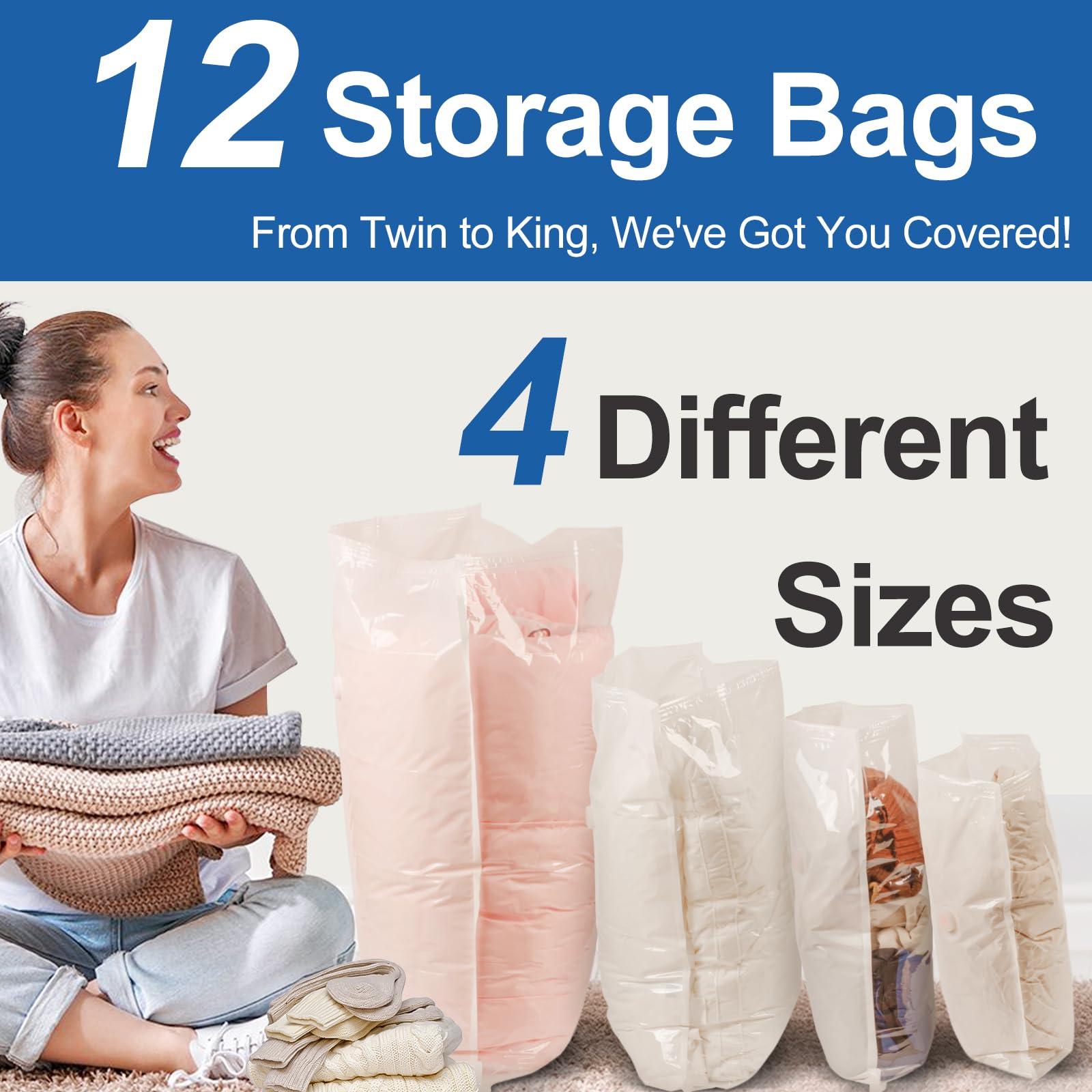 Vaakumkotid riietele ja voodipesule, erinevates suurustes (12tk)