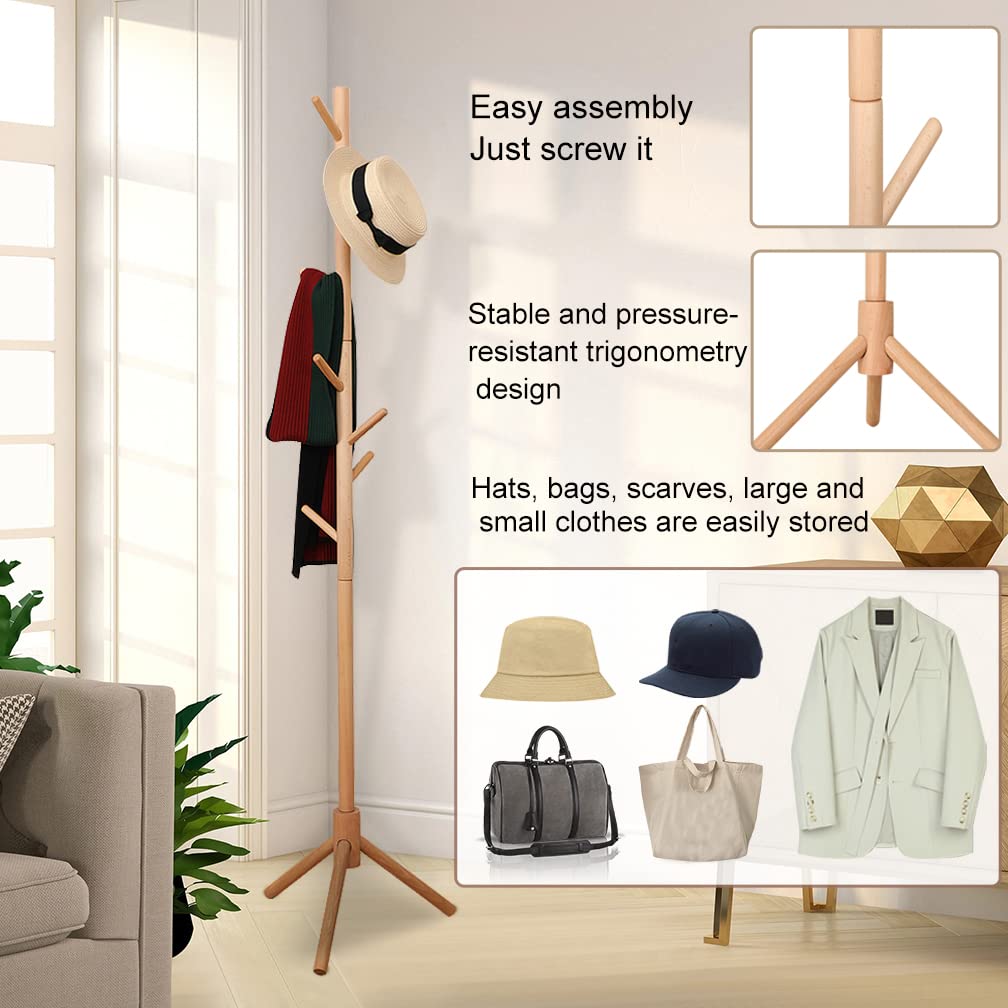 Vabalt seisev riidenagi, helepruun (8 konksu, reguleeritav, kõrgus kuni 170 cm)