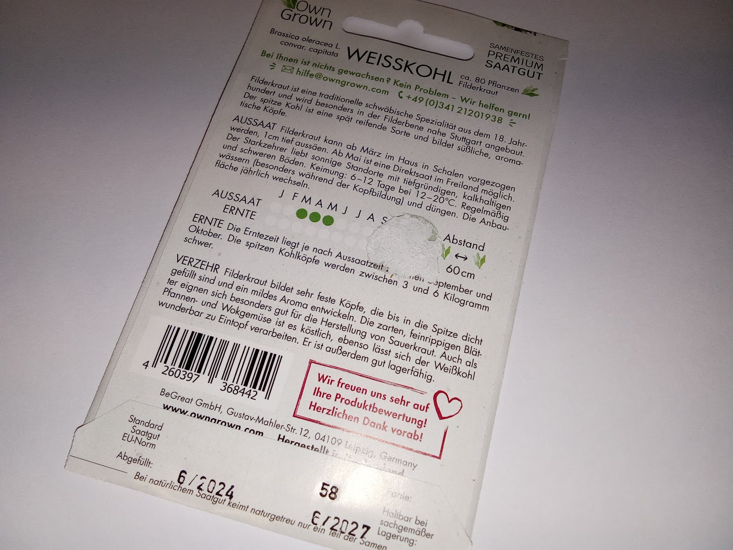 Seemned valge potimaasikas rõdule vms (tekst pakendil on saksakeelne)