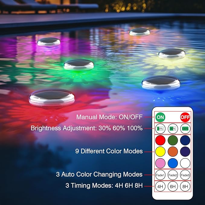 Värvilised puldi ja päikesepaneeliga basseinilambid 2 tk
