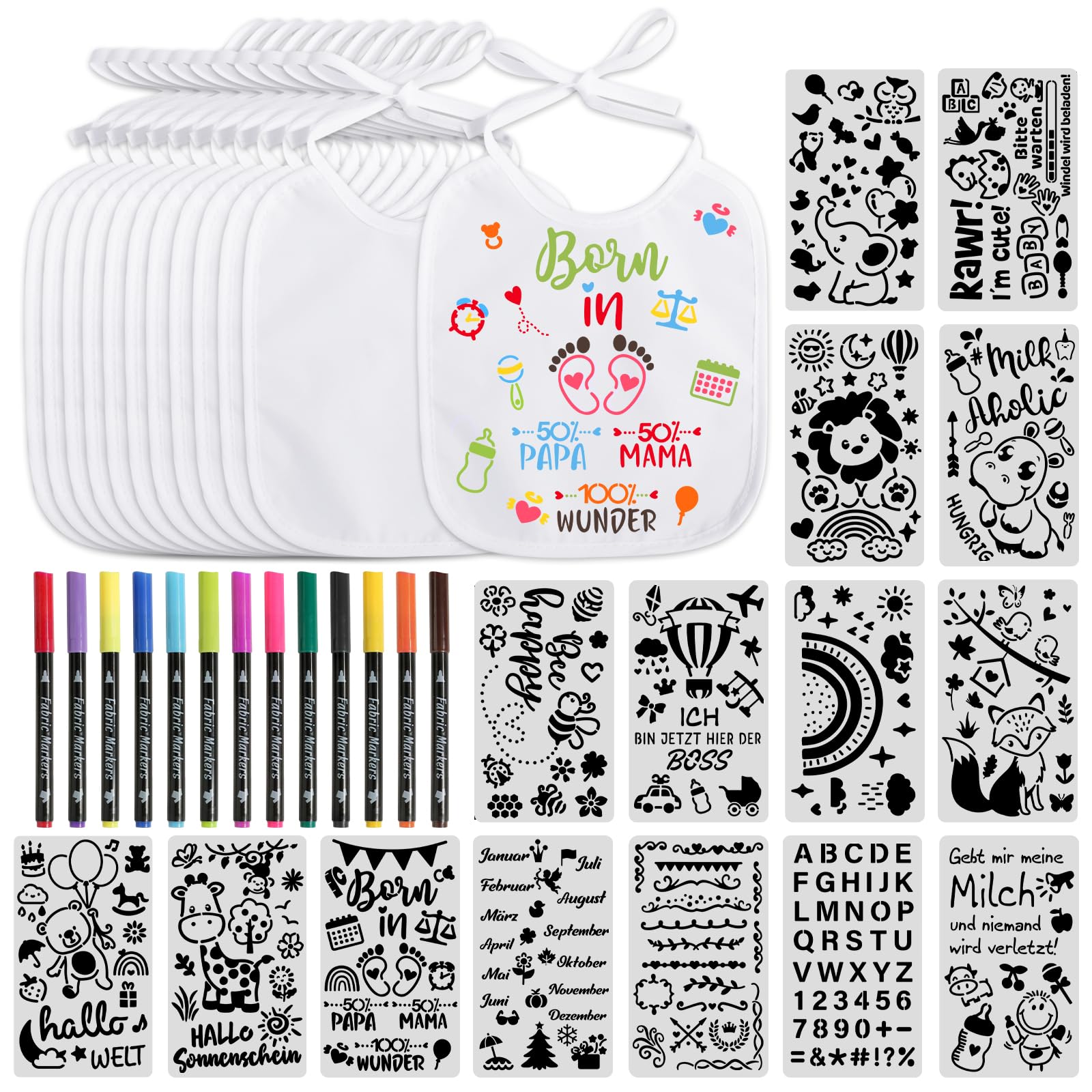 Veekindlad beebipõlled is ekaunistamiseks, koos pliiatsite ja shabloonidega, beebipeoks vms