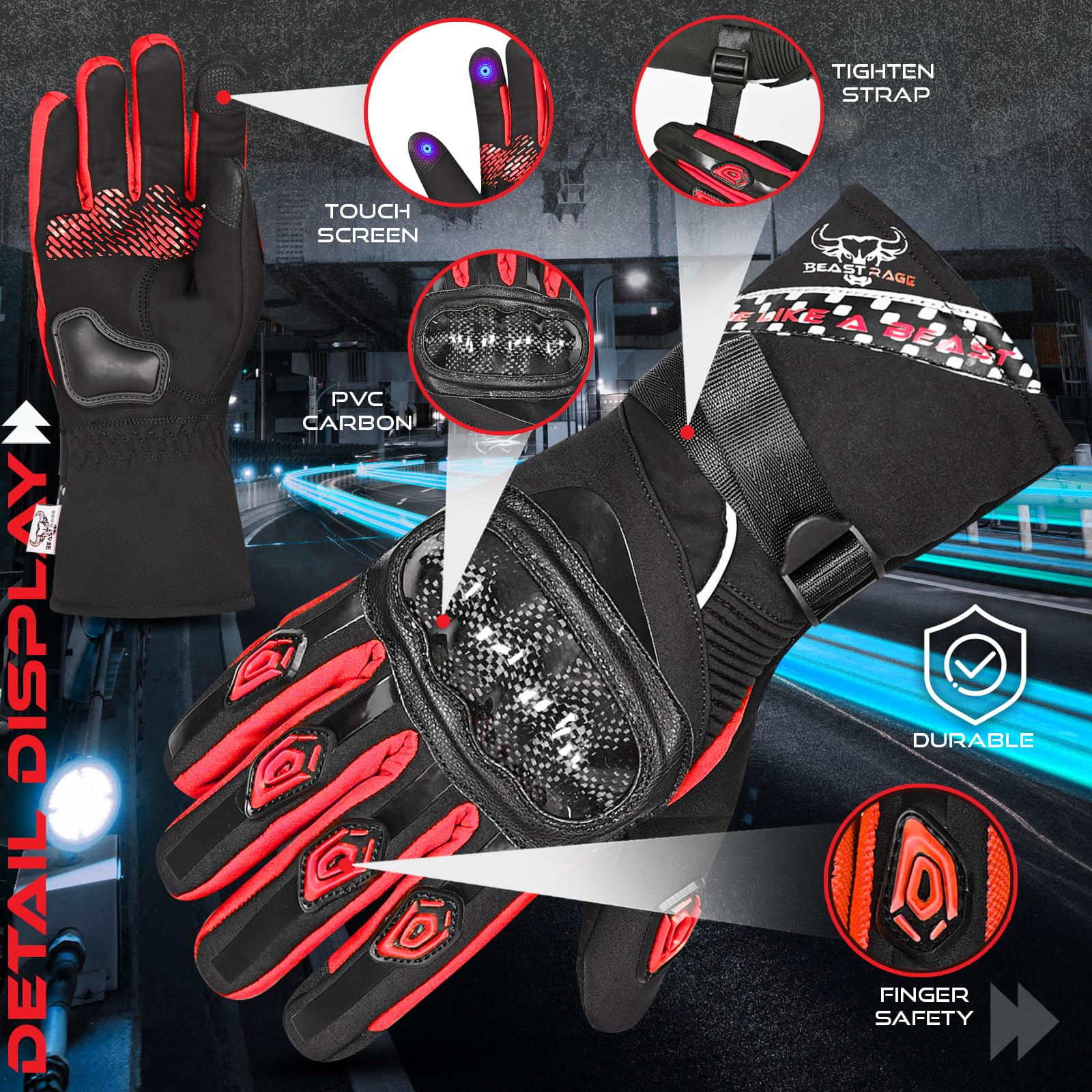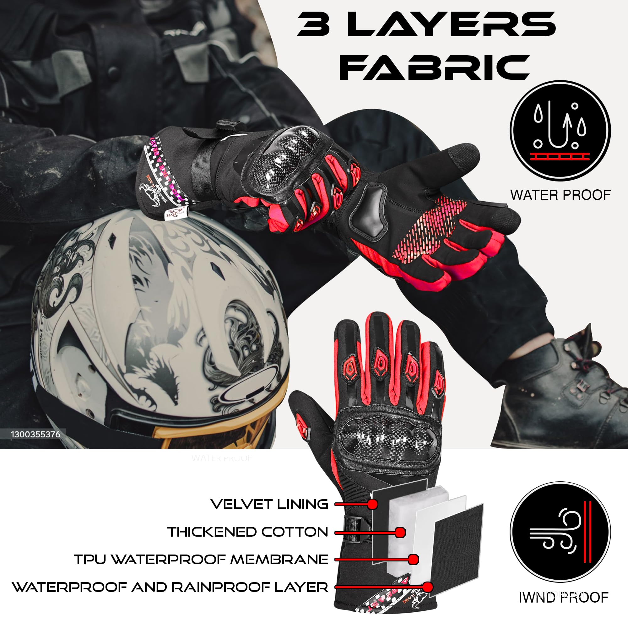 Veekindlad puutetundlikud mootorratta talvekindad, punane (M)