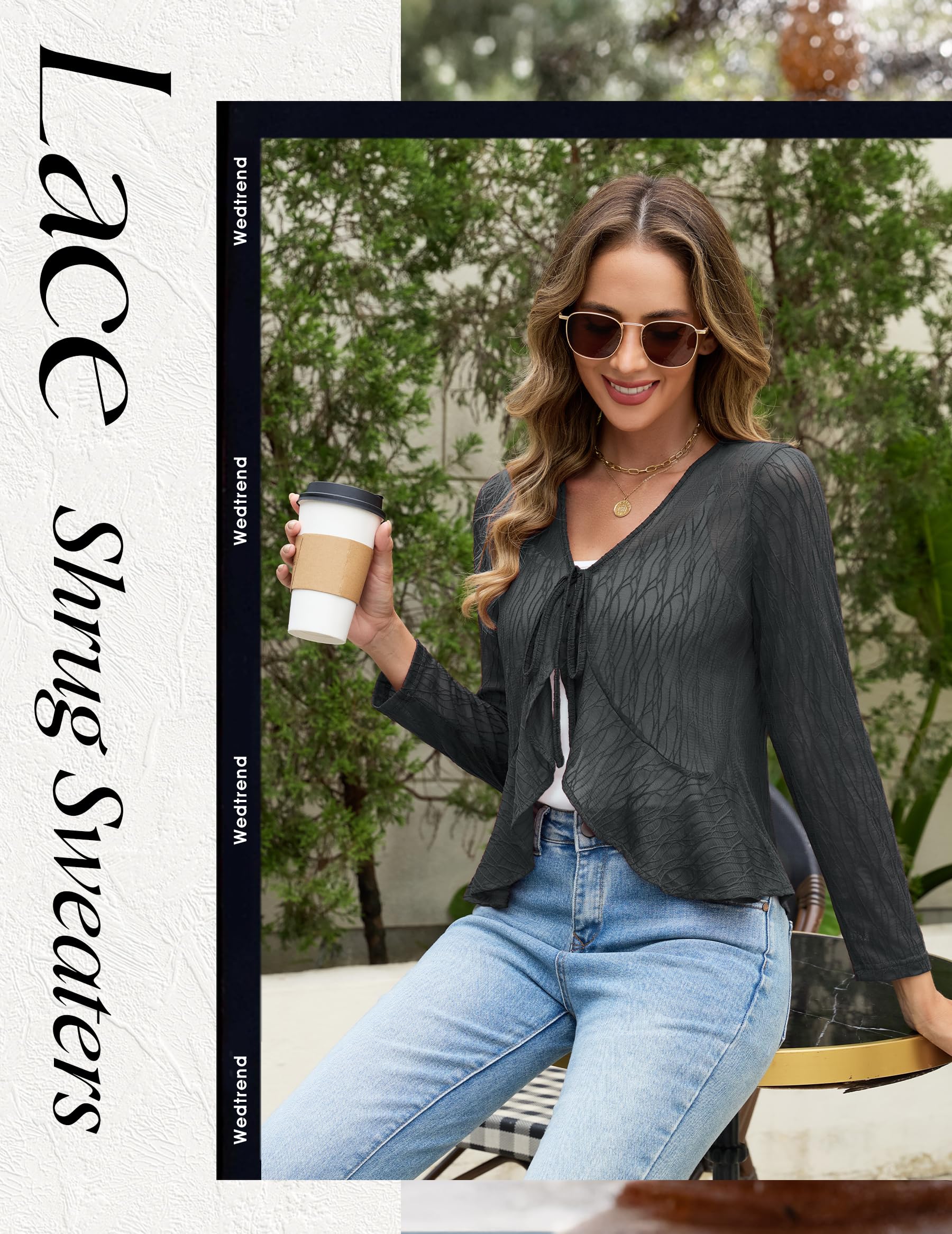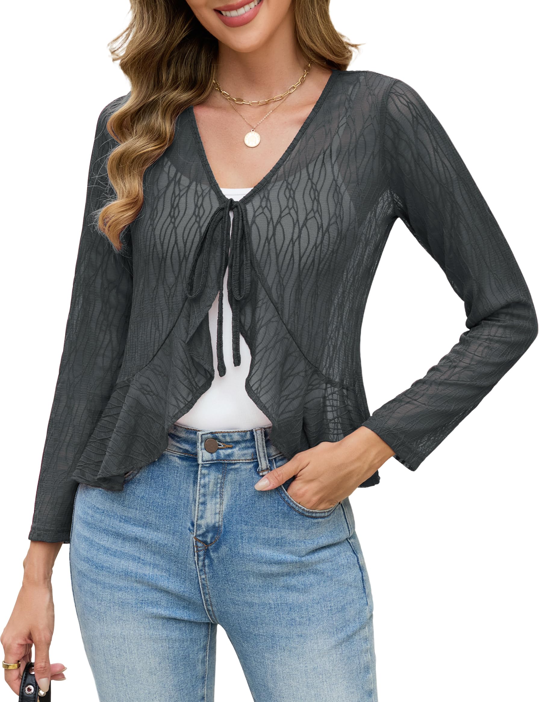 Veniv pikkade varrukatega bolero, hallikassinine (L)