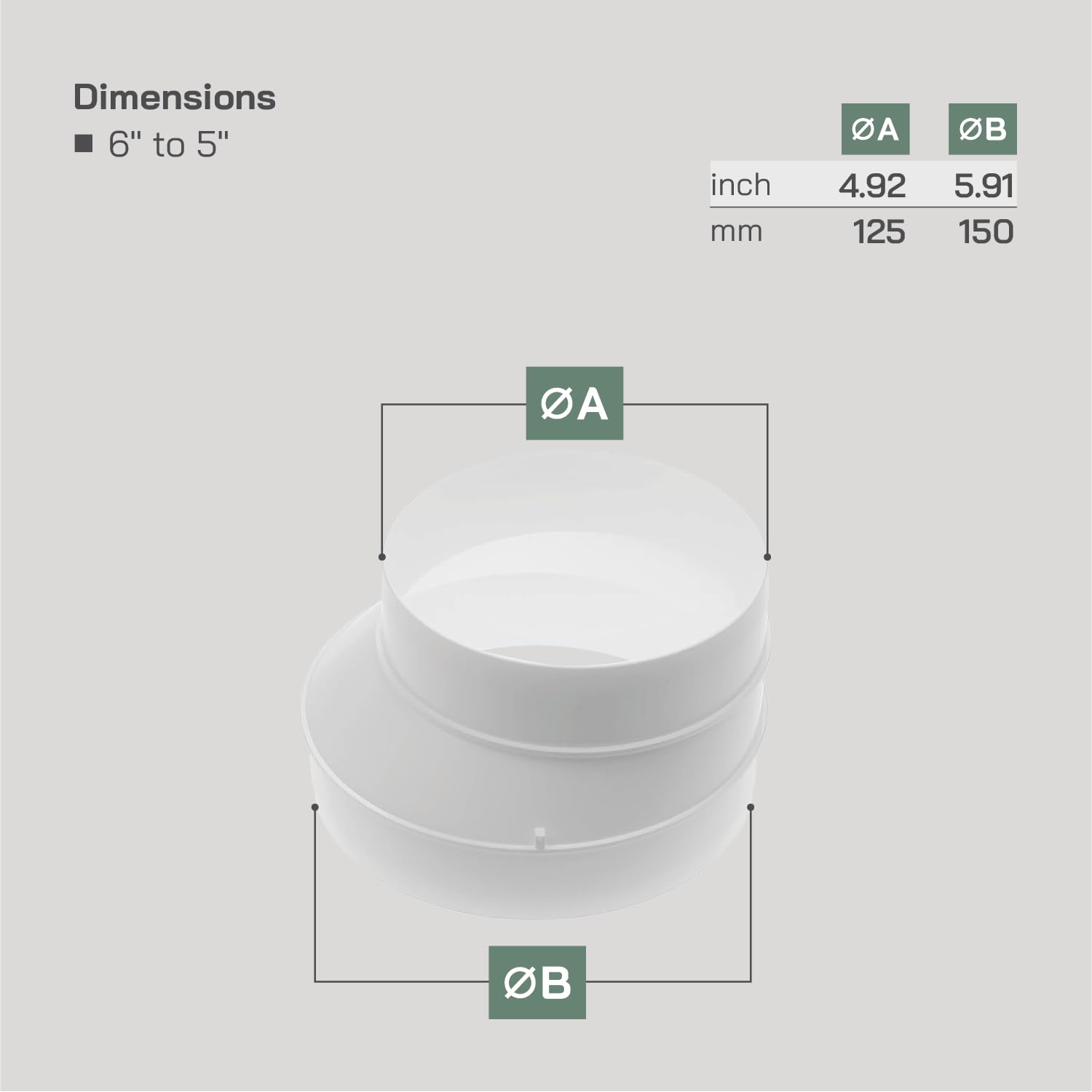 Ventilatsioonitoru reduktor, ABS plastik (150-125mm)