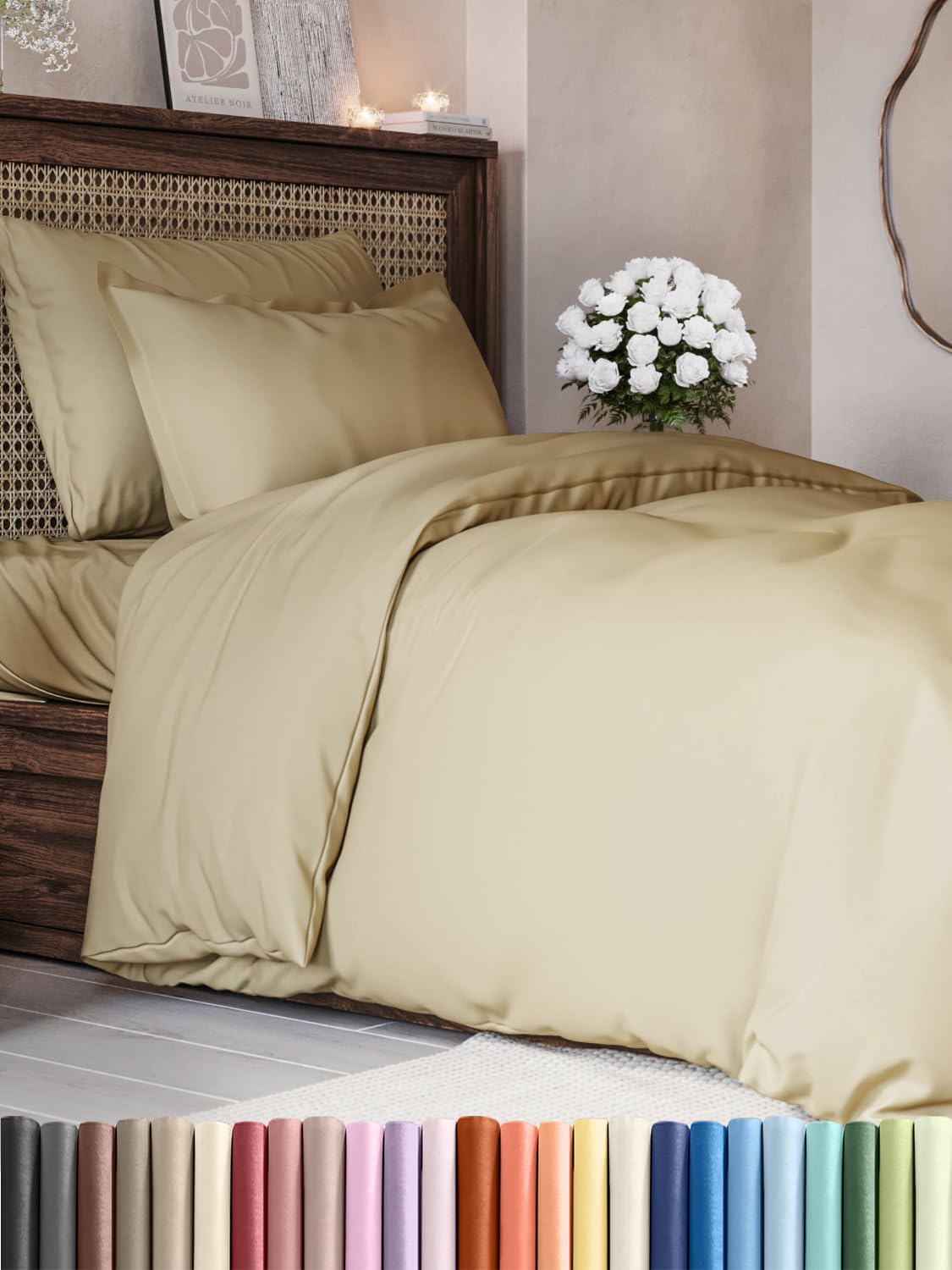 Voodipesukomplekt, beež (tekikott 140x200cm, kaks padjapüüri 65x65cm)