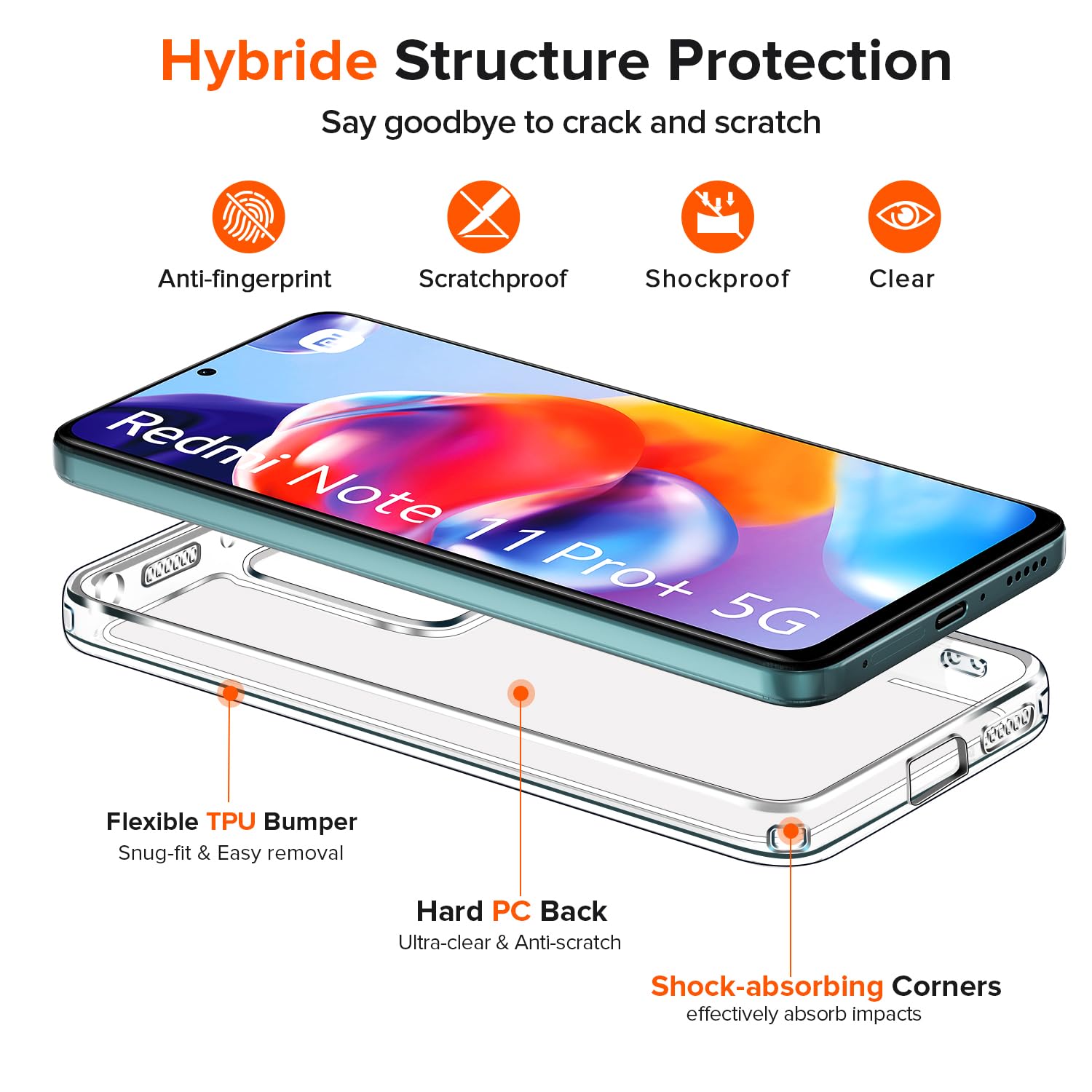 Xiaomi Redmi Note 11 Pro Plus 5G telefonikaaned, läbipaistev, põrutuskindel