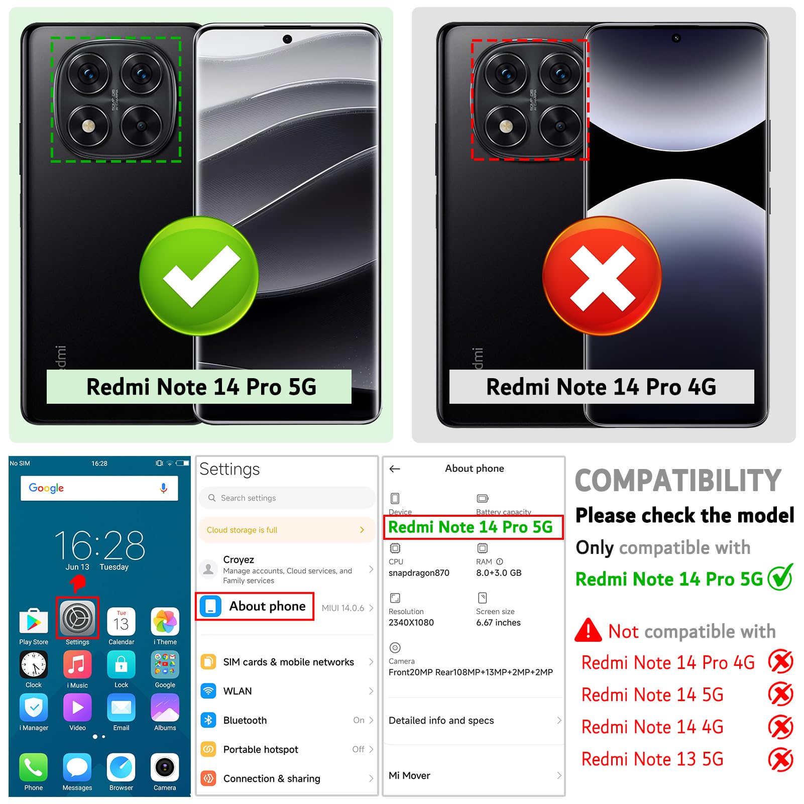 Xiaomi Redmi Note 14 Pro / 14 Pro Plus 5G klappidega nahast telefonikaaned, must